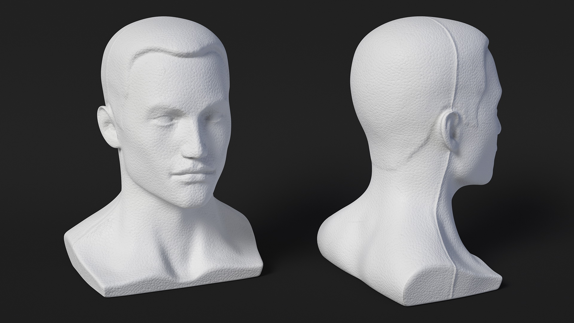 Styrofoam Male Mannequin Head with Hair is a high quality, photo real 3d model that will enhance detail and realism to any of your rendering projects. The model has a fully textured, detailed design that allows for close-up renders, and was originally modeled in 3ds Max 2020 and rendered with V-Ray. Renders have no postprocessing!