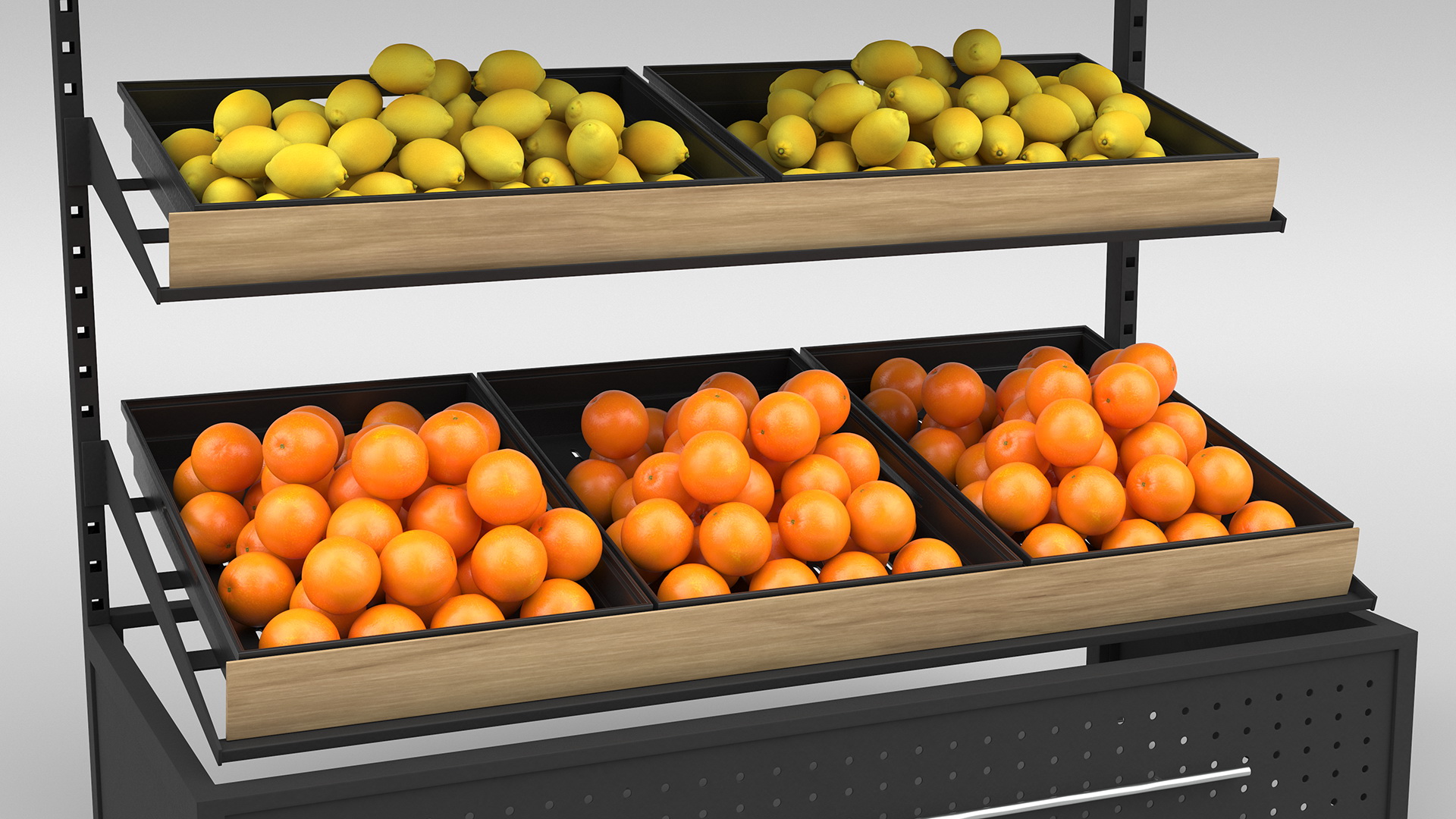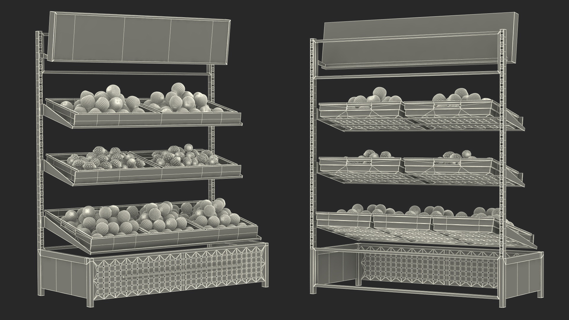 Supermarket Fruit Display Stand is a three-dimensional model of supermarket fruit display stand which is a dedicated area where a variety of fresh fruits are showcased for customers to browse and purchase.