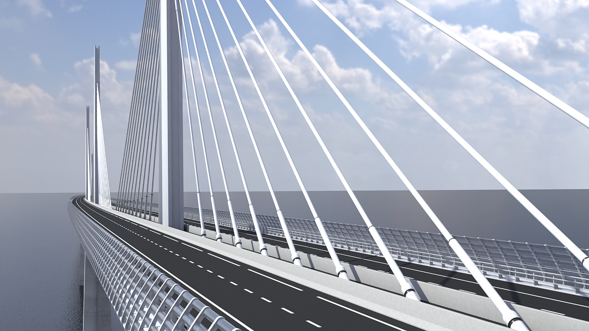 Suspension Bridge Millau Viaduct is a three-dimensional model of Millau Viaduct that is a cable-stayed bridge in southern France, spanning the Tarn River valley.