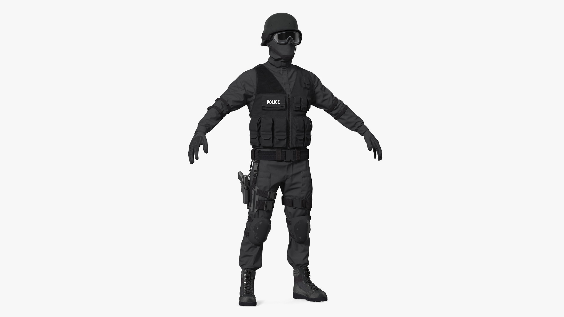 SWAT Police Officer Tactical Gear is a 3d model of specialized clothing designed for use in high-risk law enforcement operations.