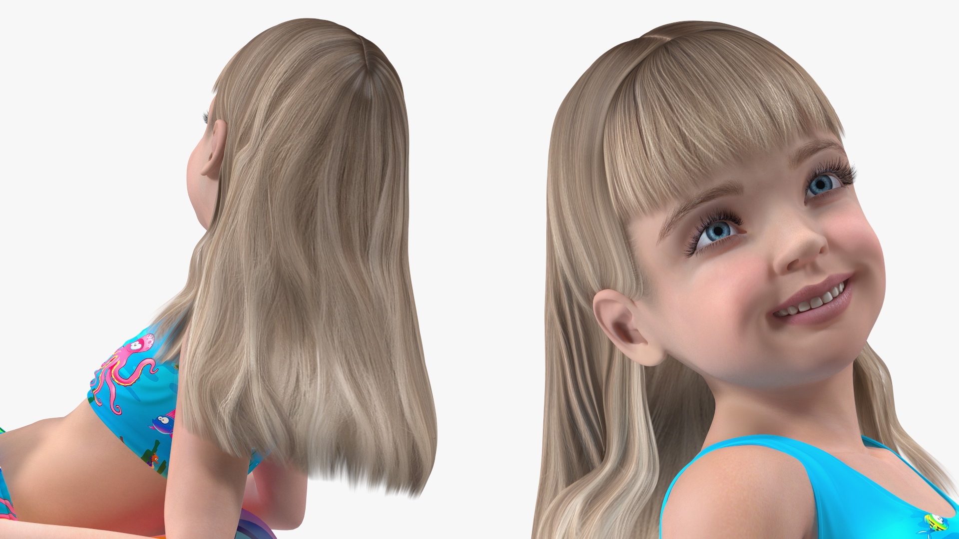 Swims Child Girl Beach Style is a 3D model of female kid (little girl) in a widespread and popular beach resort clothes (swimwear, swimsuit or swim wear).