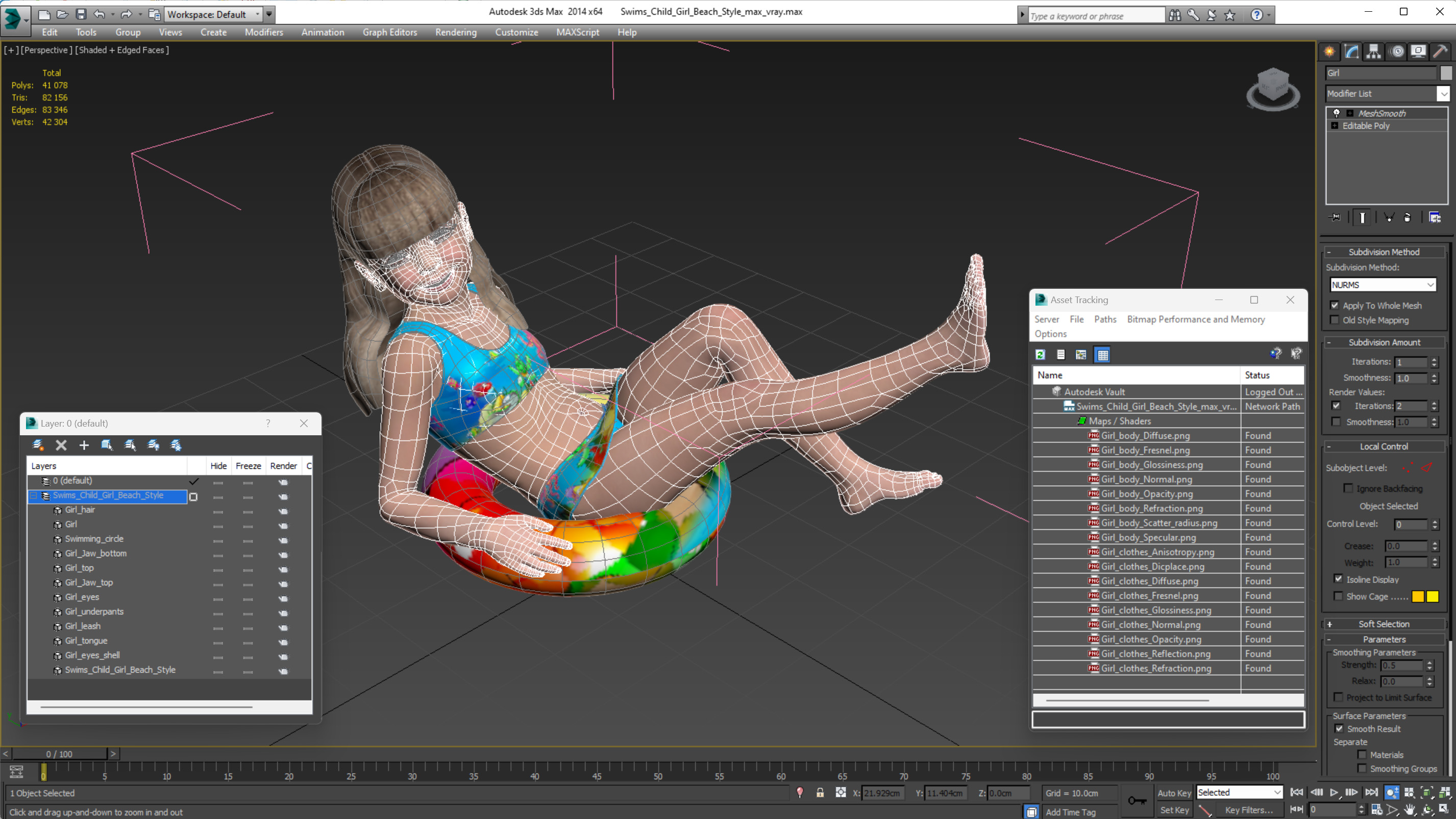 Swims Child Girl Beach Style is a high quality, photo real 3d model that will enhance detail and realism to any of your rendering projects. The model has a fully textured, detailed design that allows for close-up renders, and was originally modeled in 3ds Max 2020 and rendered with V-Ray. Renders have no postprocessing!