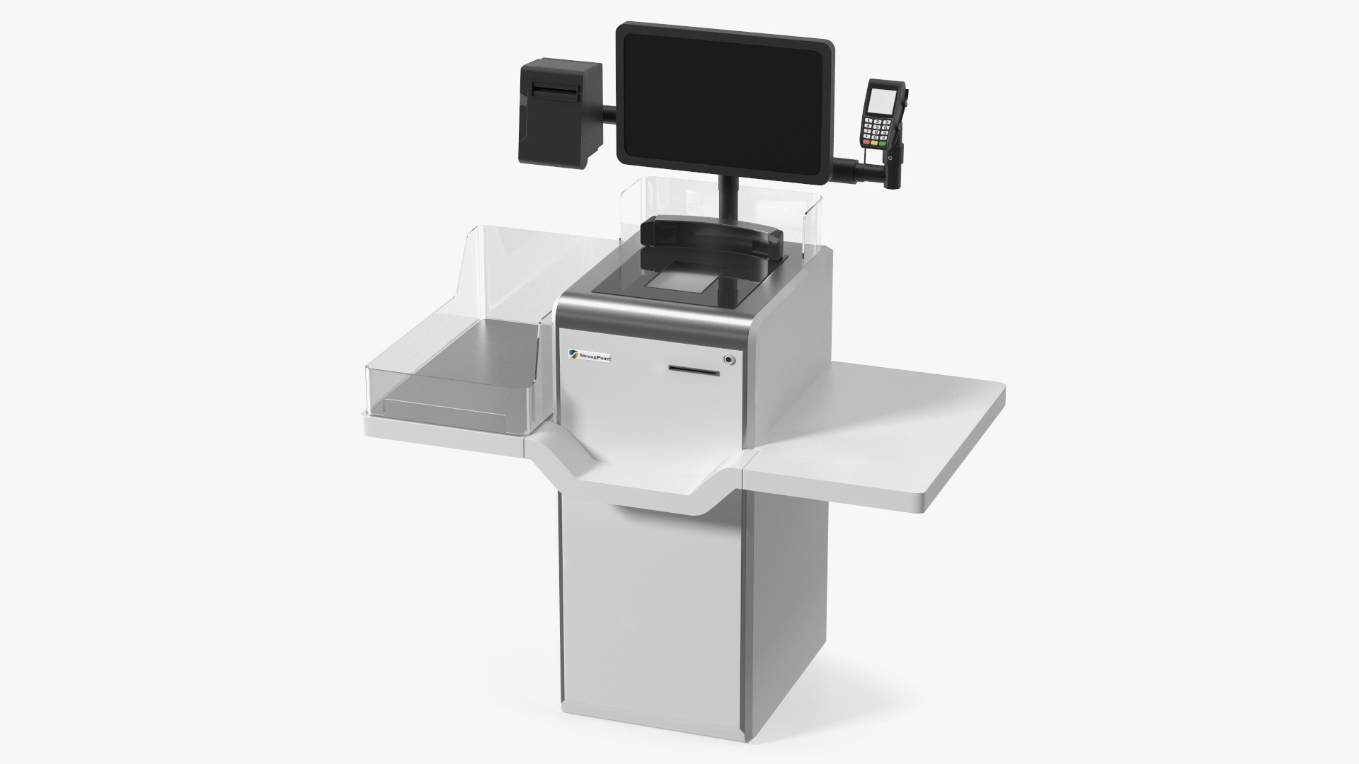 System for Self Checkout StrongPoint Switched Off is a three-dimensional model of high tech self-service shopping solution, which is a high-tech equipment.