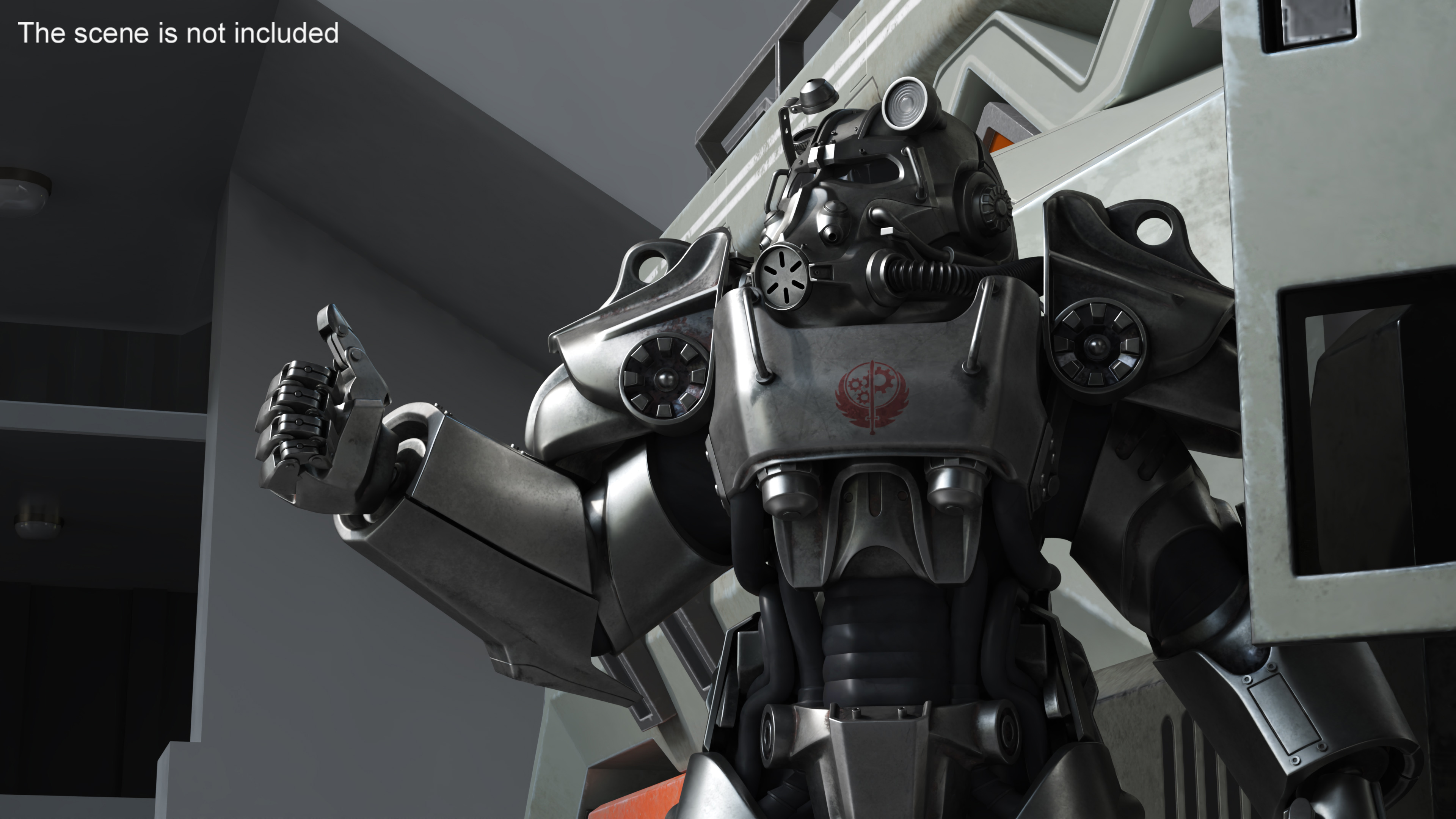 T 60 Power Armor Fallout with Rifle Rigged is a 3d model of an iconic exoskeleton from the Fallout universe, complete with integrated weaponry and combat gear.