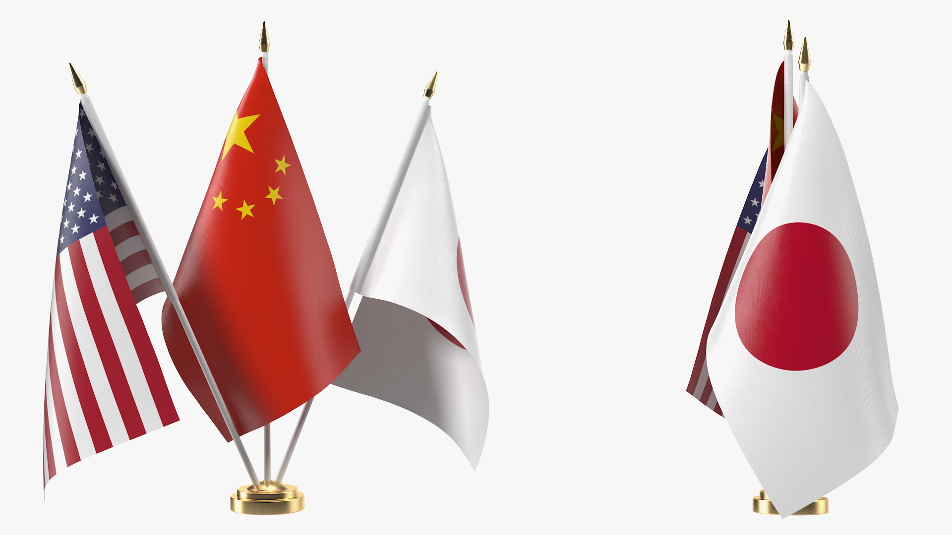 Table Flags USA, China and Japan fabric and pole state distinction accessories for countries friendship communication.