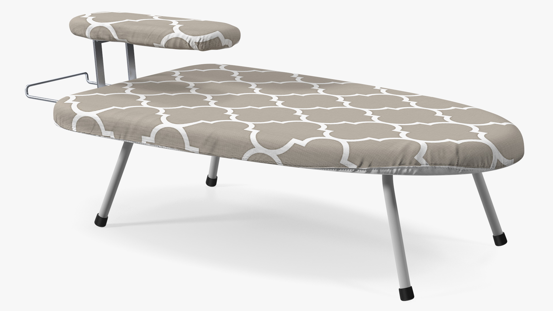 Tabletop Ironing Board Beige is a 3d model of small, portable ironing board that can be placed on a table or countertop.