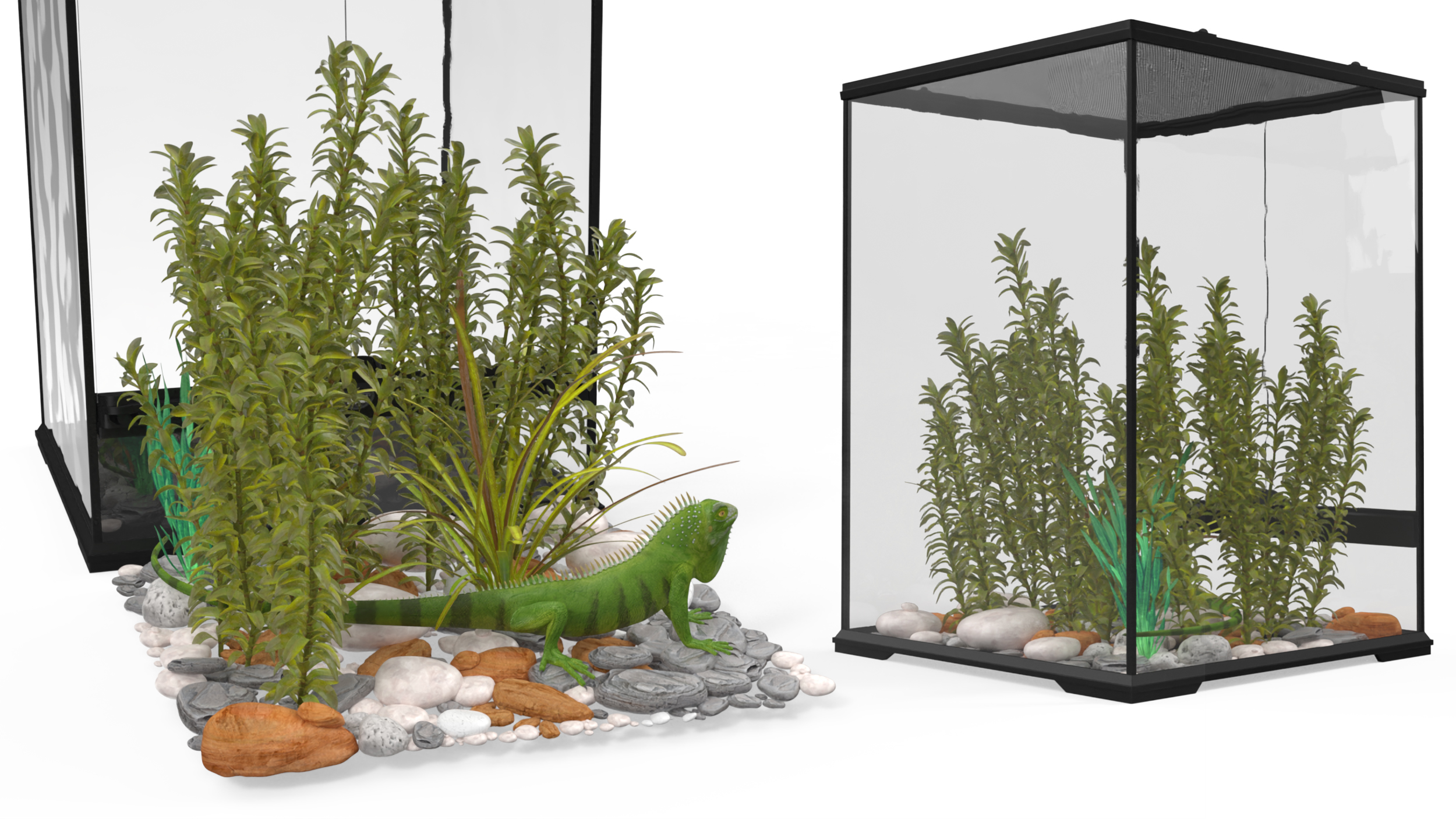 Tall Terrarium for Reptiles with Iguana is a high quality, photo real 3d model that will enhance detail and realism to any of your rendering projects. The model has a fully textured, detailed design that allows for close-up renders, and was originally modeled in 3ds Max 2020 and rendered with V-Ray. Renders have no postprocessing!
