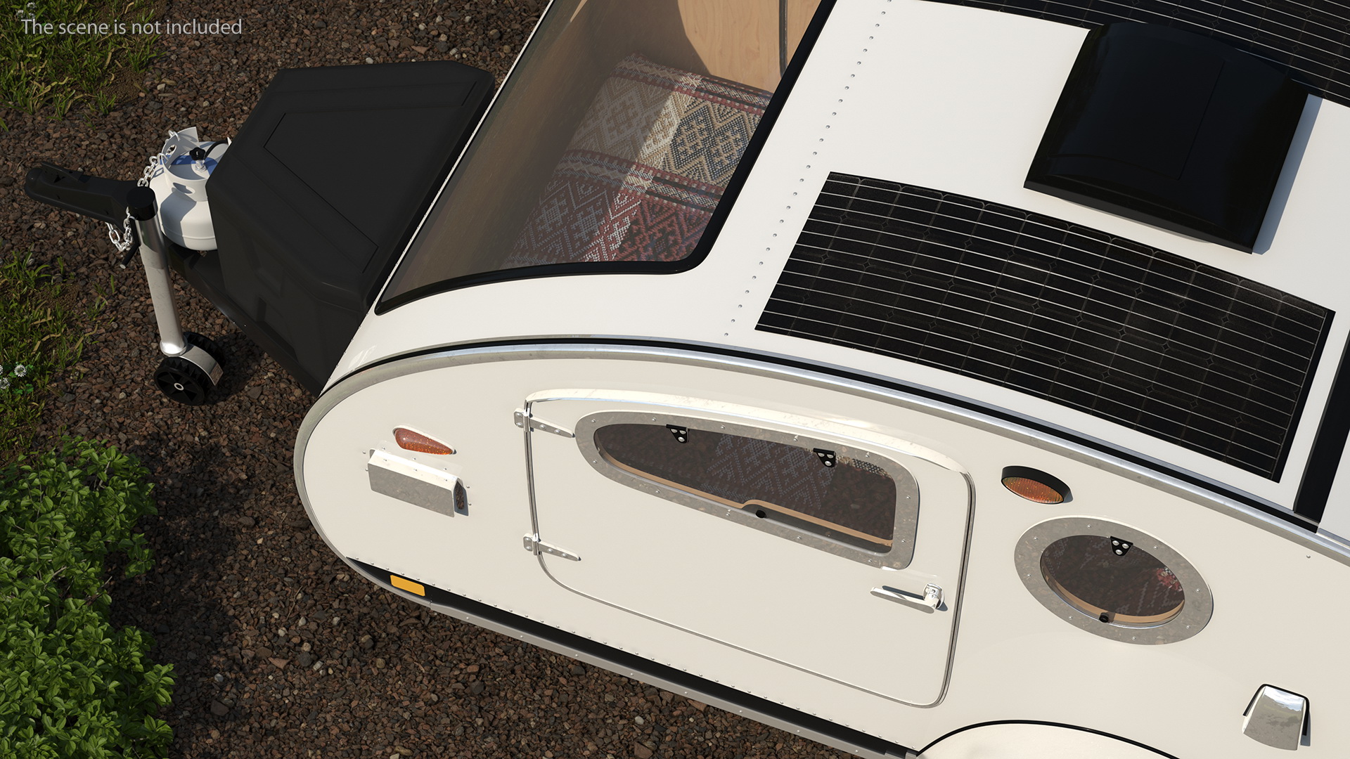 Teardrop Camping Trailer Rigged is a three-dimensional model of a teardrop profile caravan which is towed trailer vehicle.