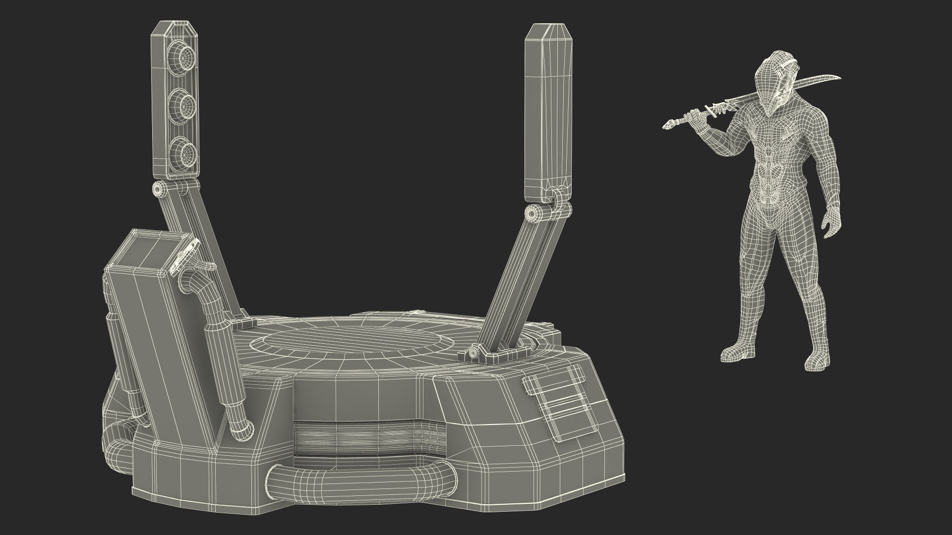 Teleportation Platform with Cosmic Soldier is a high quality, photo real 3d model that will enhance detail and realism to any of your rendering projects. The model has a fully textured, detailed design that allows for close-up renders, and was originally modeled in 3ds Max 2020 and rendered with V-Ray. Renders have no postprocessing!