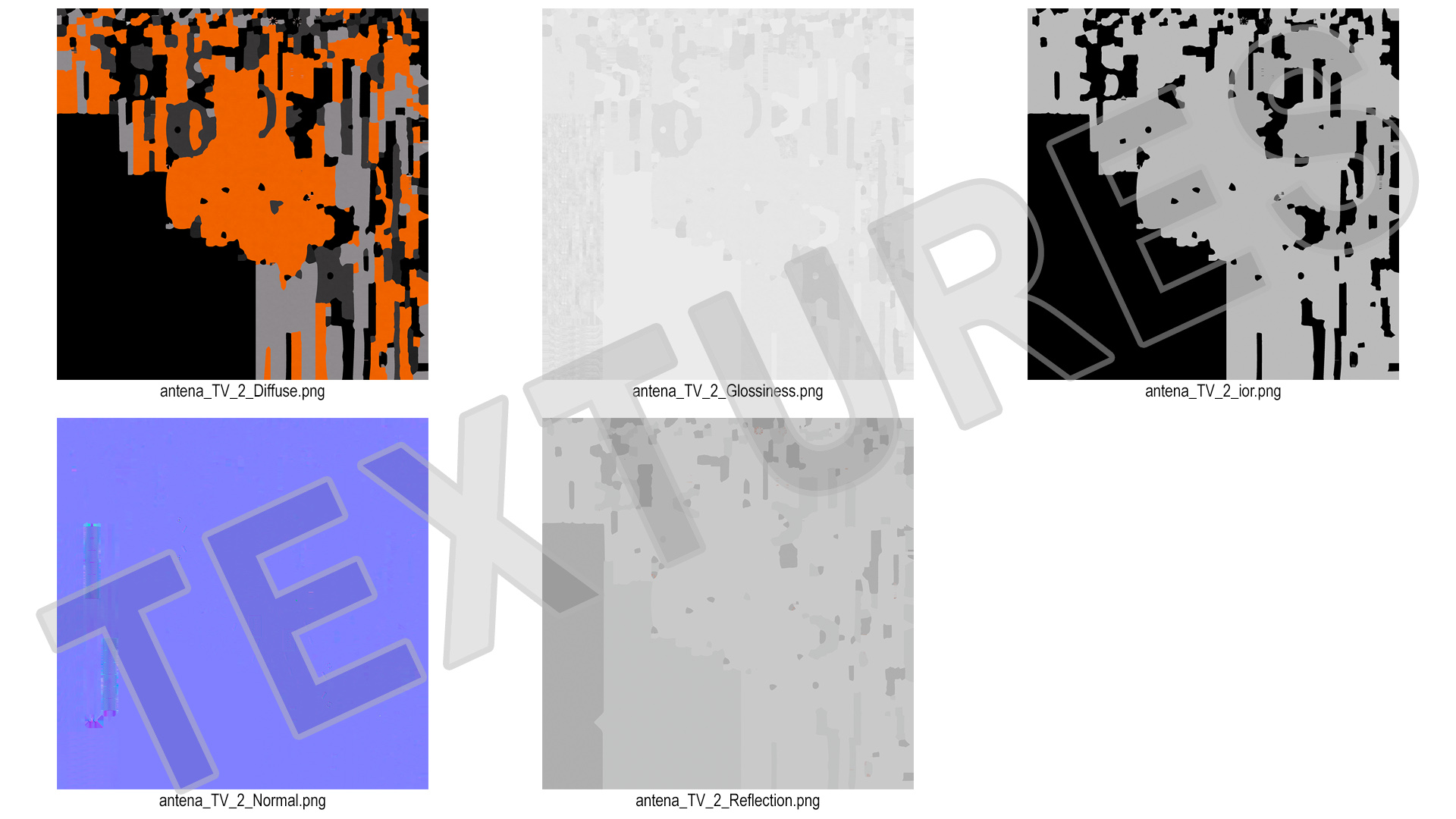All textures and materials are included and mapped. (All colors can be easily modified.)