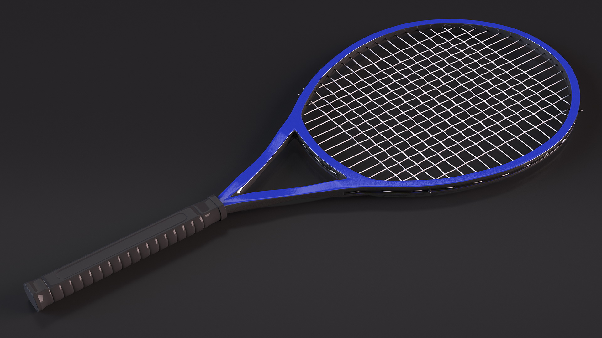 Tennis Racket with Blue Frame is a three-dimensional model of popular tennis racquet which is a well known, popular and specifically designed sport equipment unit.