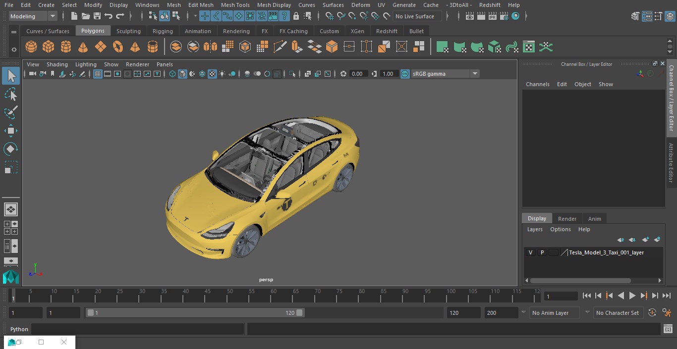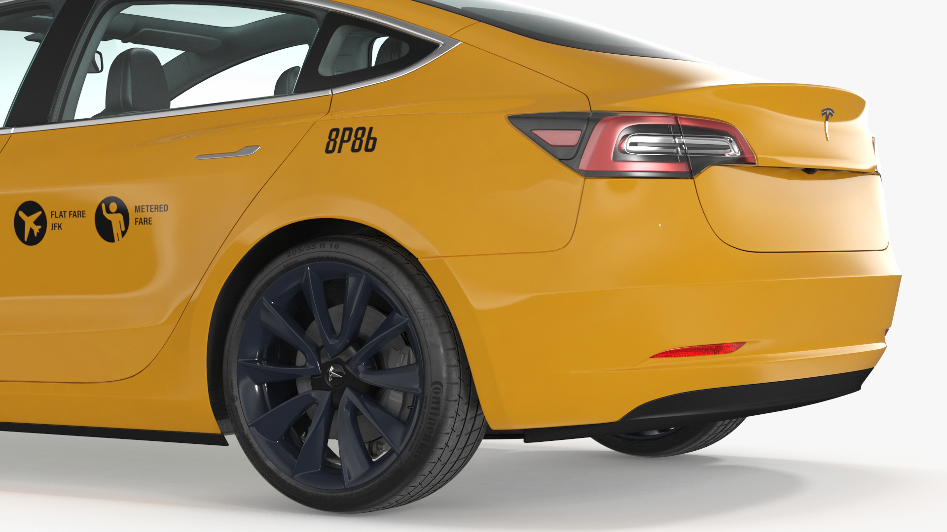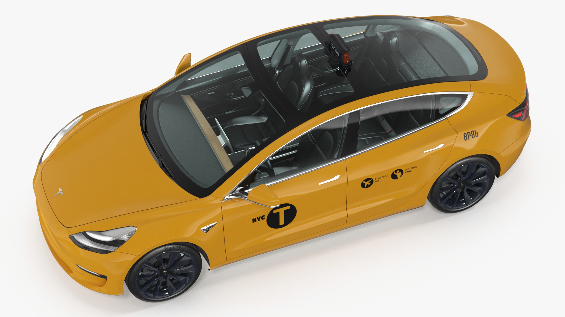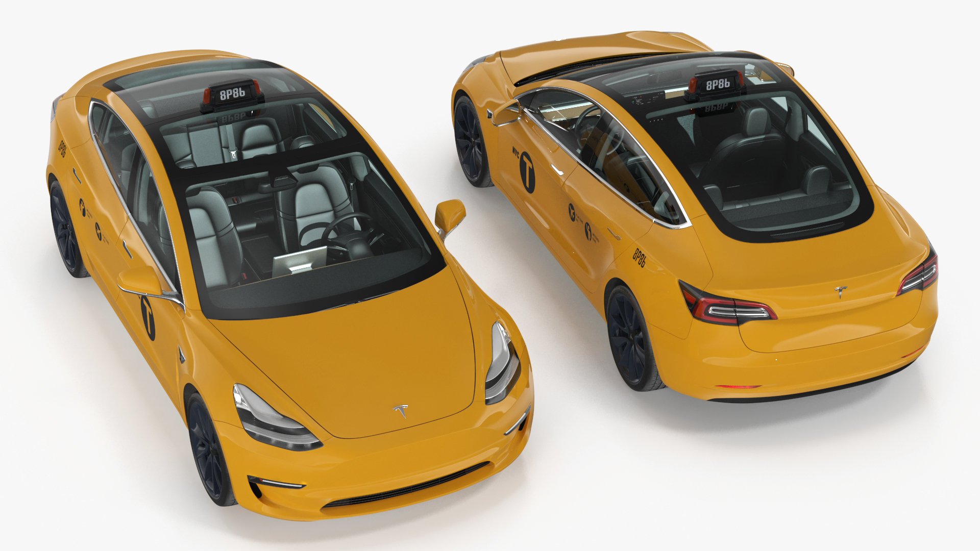 Tesla Model 3 Taxi is a three-dimensional model of Tesla Model 3 Taxi which is an electric vehicle designed for use as a taxi or ridesharing service.