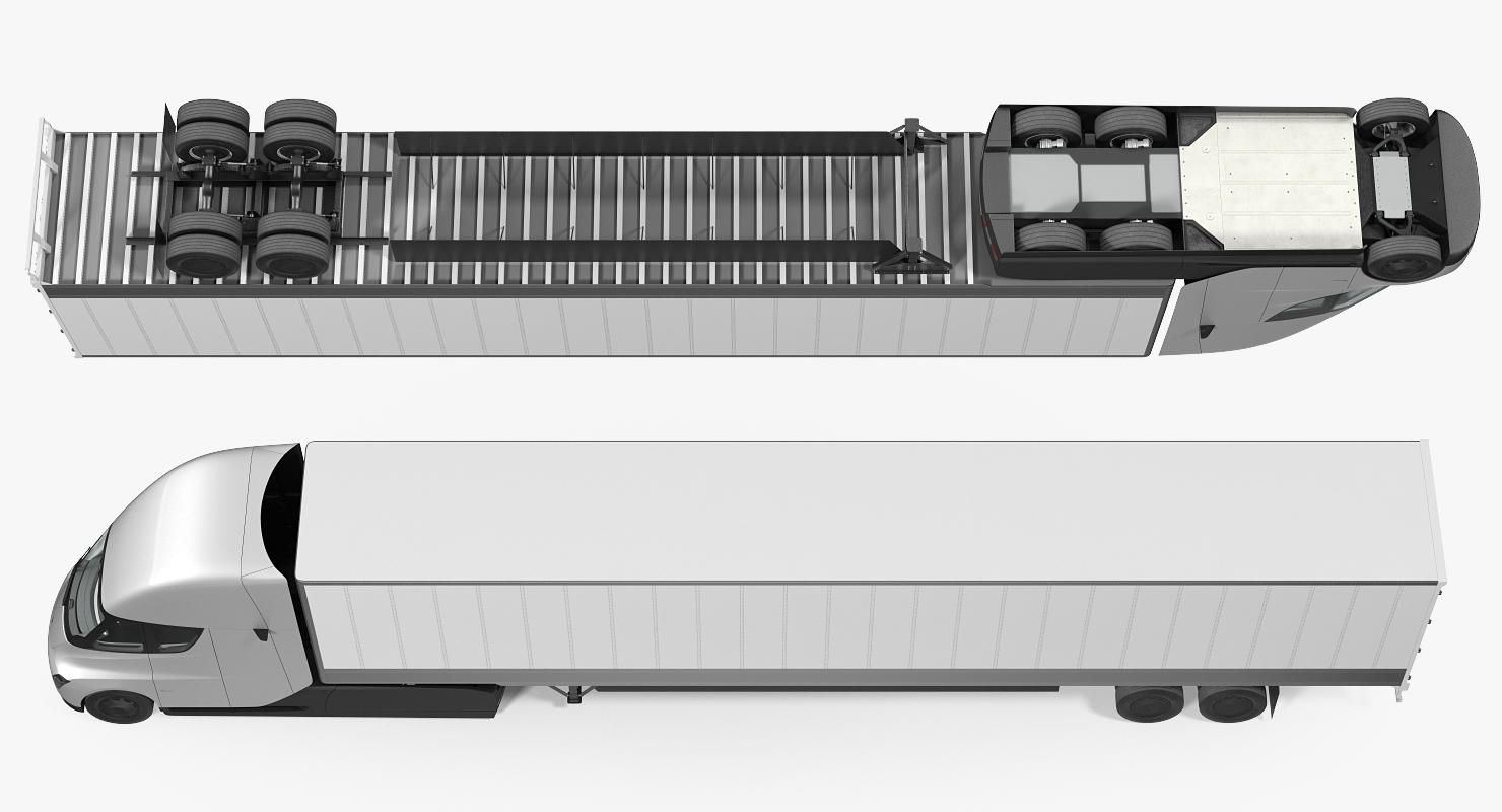 Tesla Semi Truck with Trailer Simple Interior is a high quality, photo real 3d model that will enhance detail and realism to any of your rendering projects. The model has a fully textured, detailed design that allows for close-up renders, and was originally modeled in 3ds Max 2020 and rendered with V-Ray. Renders have no postprocessing!