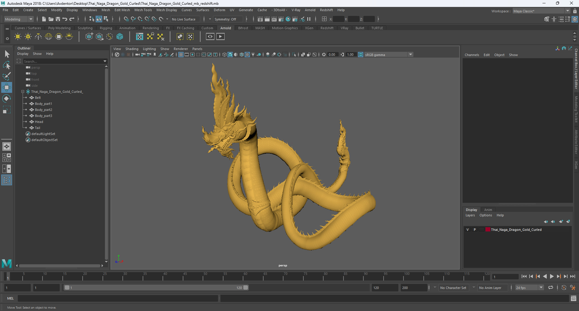 Thai Naga Dragon Gold Curled is a high quality, photo real 3d model that will enhance detail and realism to any of your rendering projects. The model has a fully textured, detailed design that allows for close-up renders, and was originally modeled in 3ds Max 2020 and rendered with V-Ray. Renders have no postprocessing!