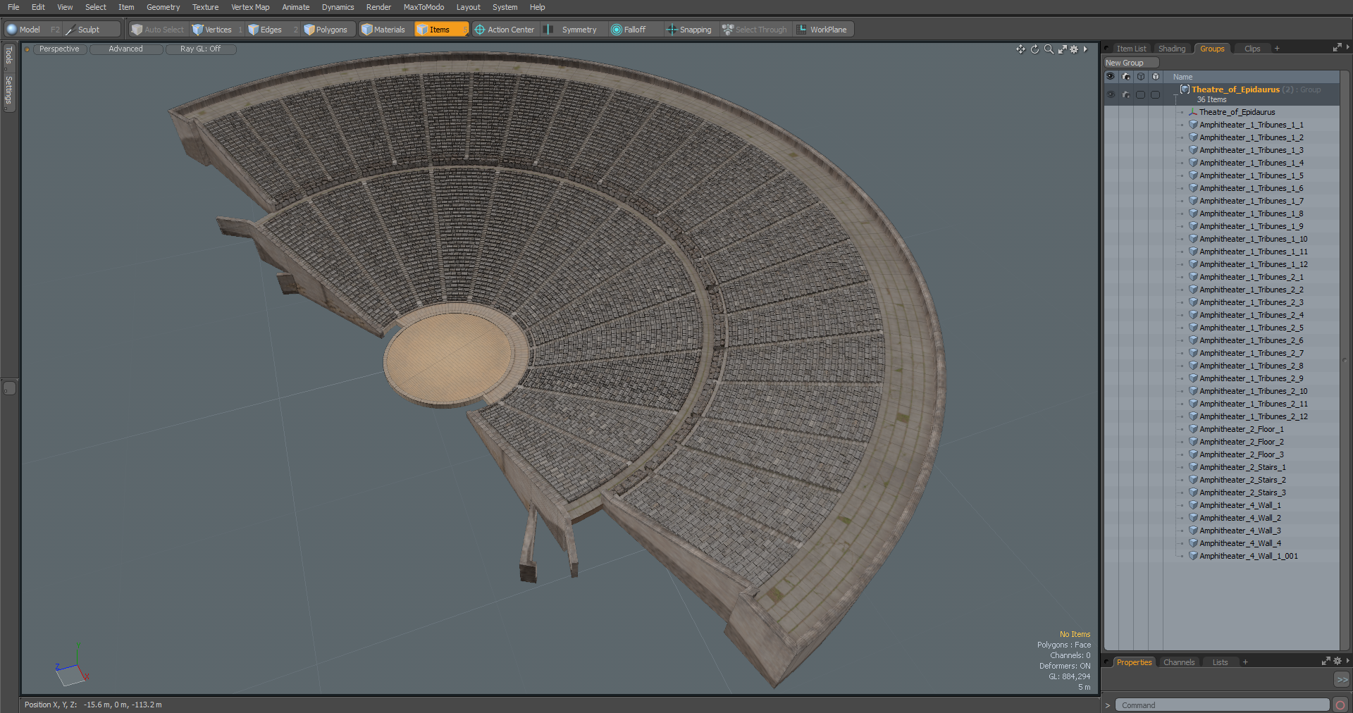 Theatre of Epidaurus is a three-dimensional model of ancient Amphitheater of Epidaurus, located in Greece, that is renowned for its exceptional acoustics and design.