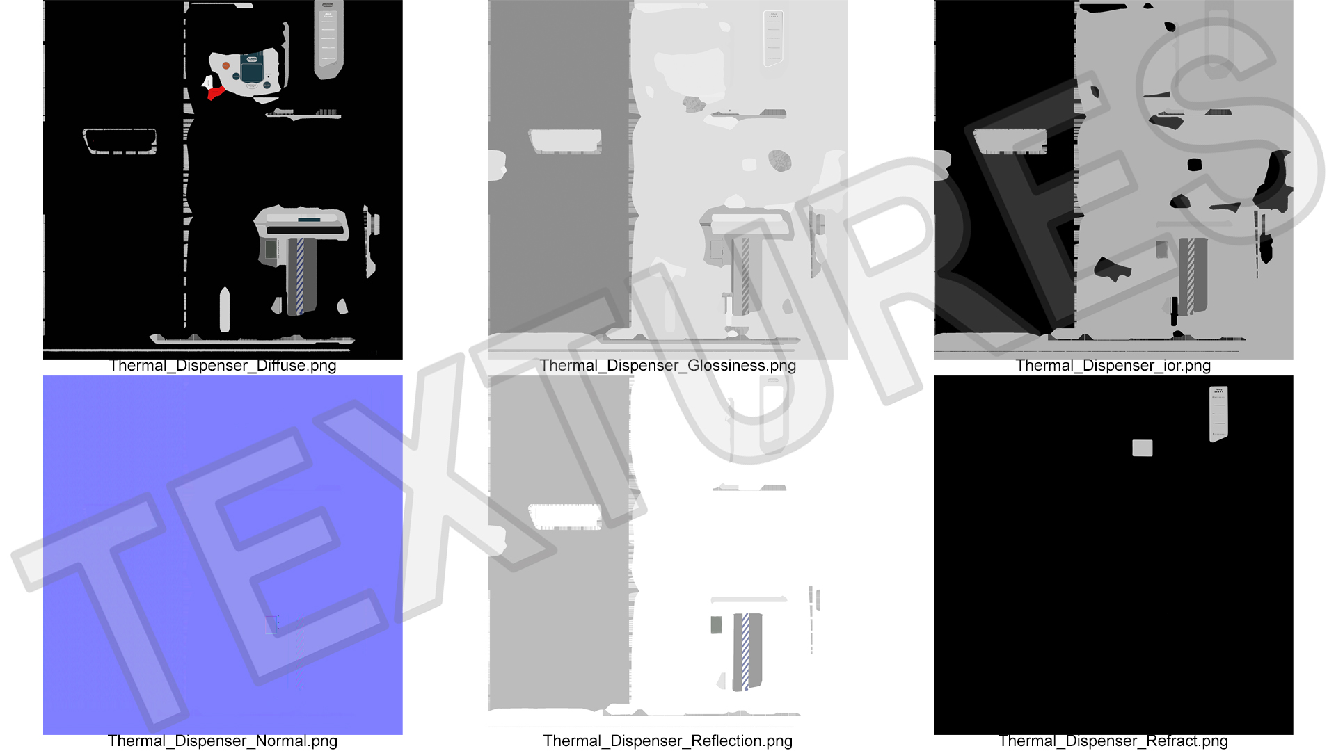 All textures and materials are included and mapped. (All colors can be easily modified.)