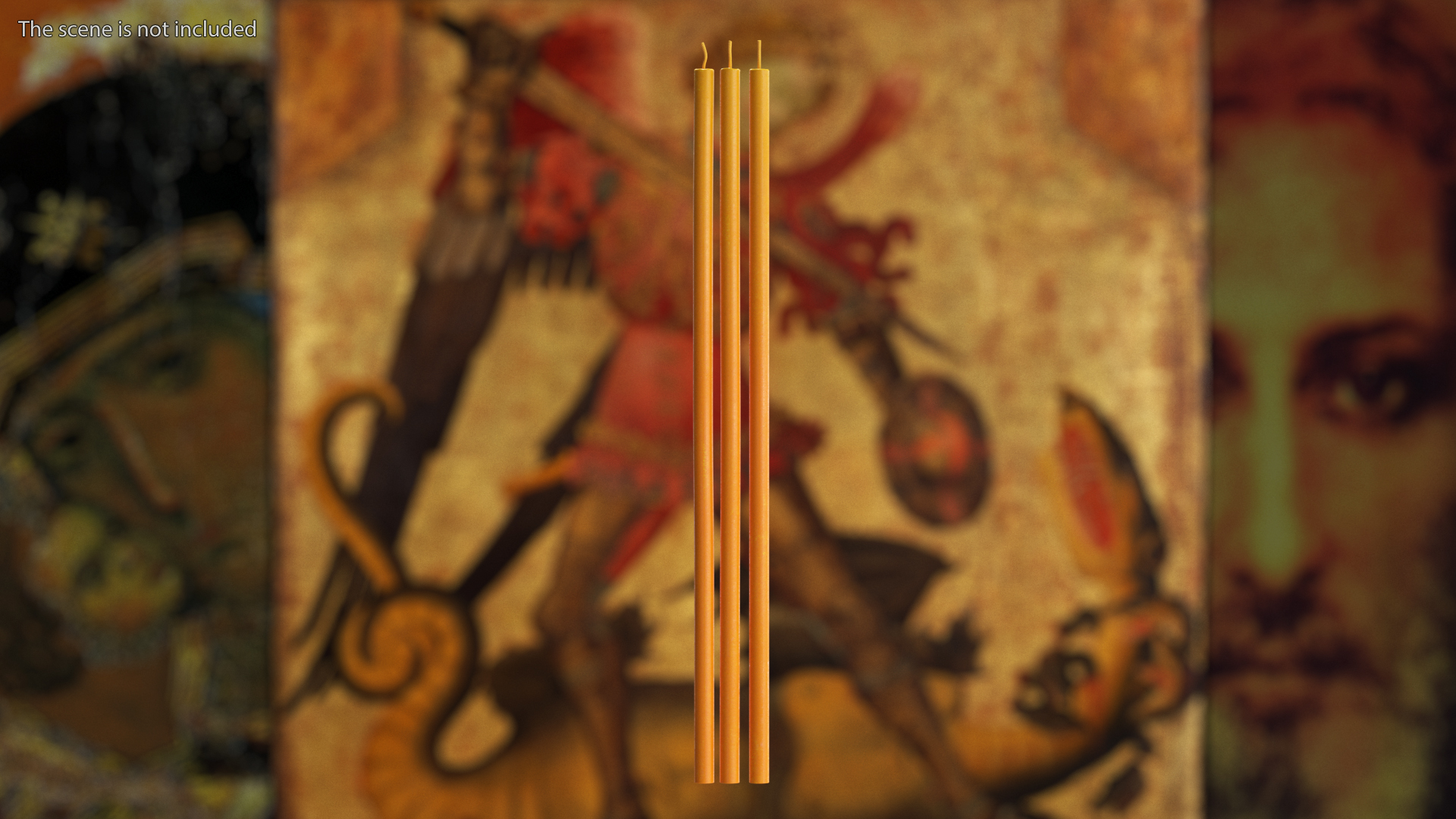 Thin Church Wax Candles is a 3d model of three candles as symbol of votive offering in an act of Christian prayer. Сhurch candles carry several spiritual meanings: voluntary sacrifice to God and church, expression of willingness to obey God, evidence of faith. The candle expresses the warmth and flame of a person's love for God, an angel or a saint, at whose faces the believer puts his candle.