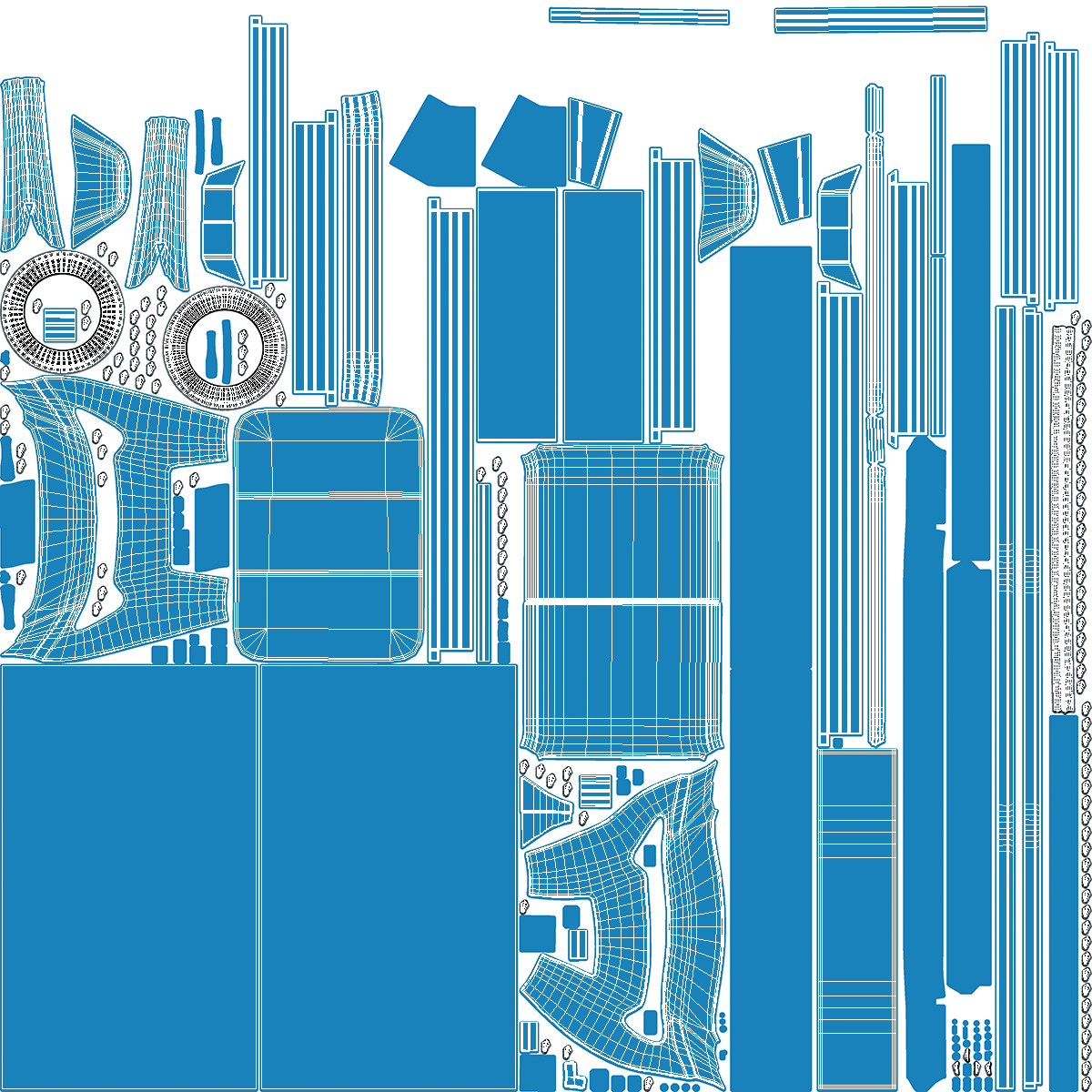 All textures and materials are included and mapped. (All colors can be easily modified.)