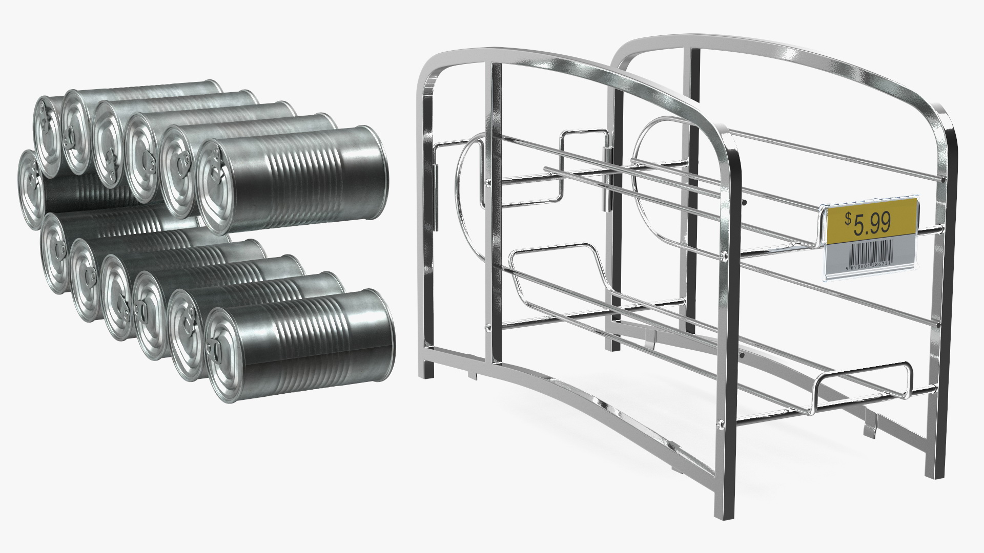 Tin Can Dispenser with Tin Cans and Price Label is a high quality, photo real 3d model that will enhance detail and realism to any of your rendering projects. The model has a fully textured, detailed design that allows for close-up renders, and was originally modeled in 3ds Max 2020 and rendered with V-Ray. Renders have no postprocessing!