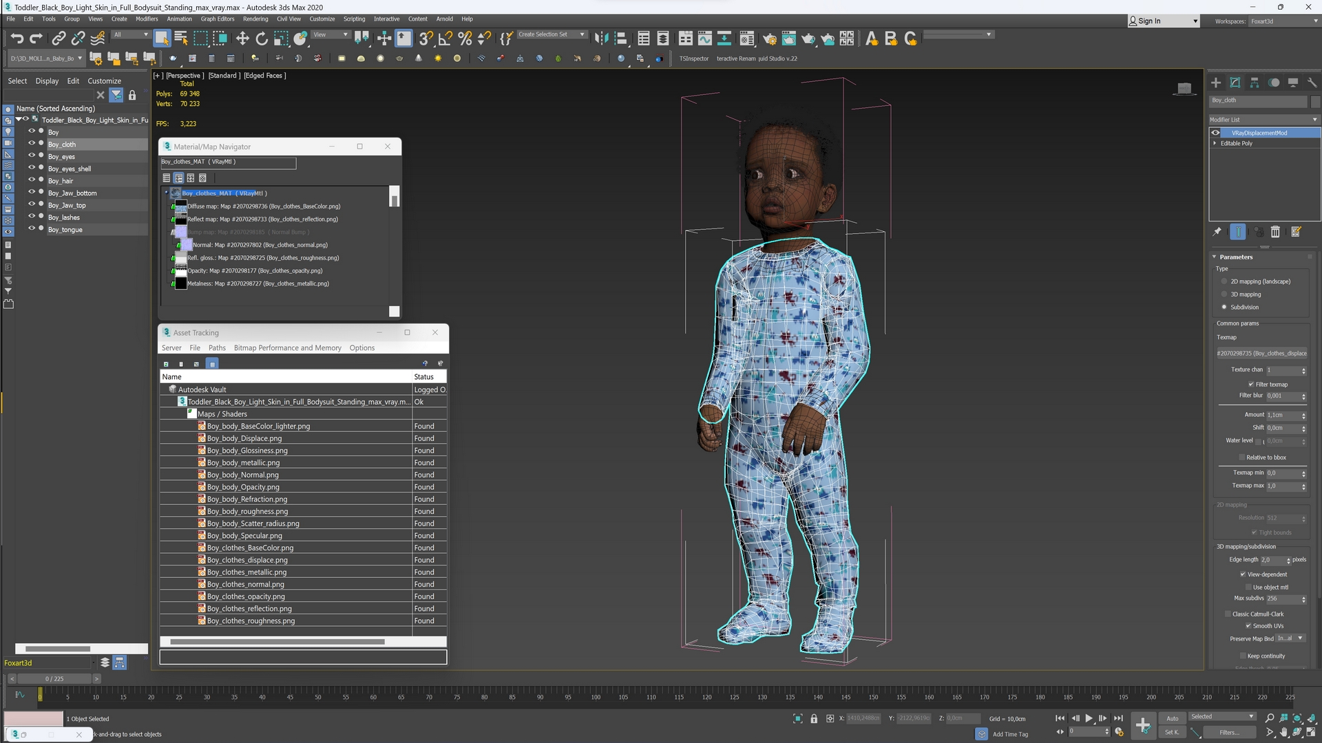 Toddler Black Boy Light Skin in Full Bodysuit Standing is a high quality, photo real 3d model that will enhance detail and realism to any of your rendering projects. The model has a fully textured, detailed design that allows for close-up renders, and was originally modeled in 3ds Max 2020 and rendered with V-Ray. Renders have no postprocessing!