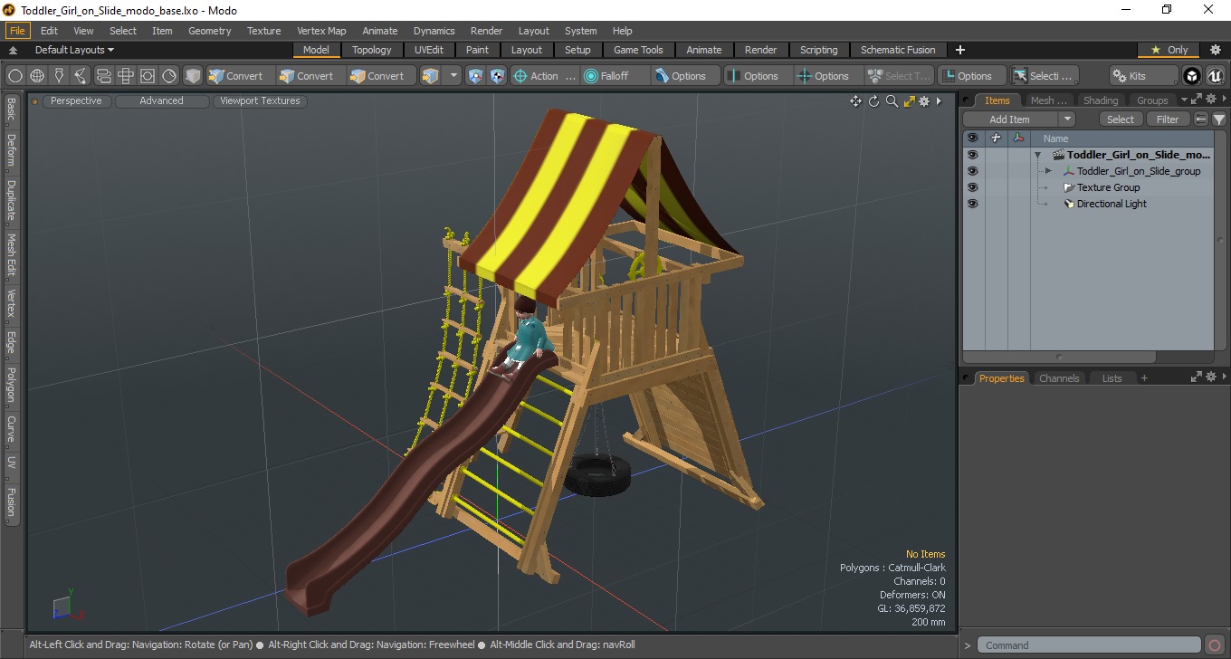 Toddler Girl on Slide is a high quality, photo real 3d model that will enhance detail and realism to any of your rendering projects. The model has a fully textured, detailed design that allows for close-up renders, and was originally modeled in 3ds Max 2020 and rendered with V-Ray. Renders have no postprocessing!