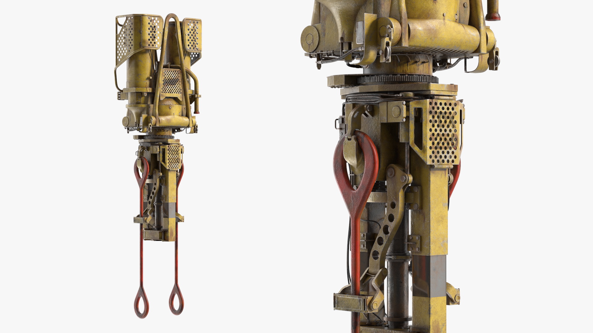 This model includes detailed features such as the motor unit, gear mechanisms, and structural components that are characteristic of older top drive systems. The design emphasizes realistic textures and mechanical intricacies, making it ideal for historical visualizations, technical illustrations, and industrial training materials.