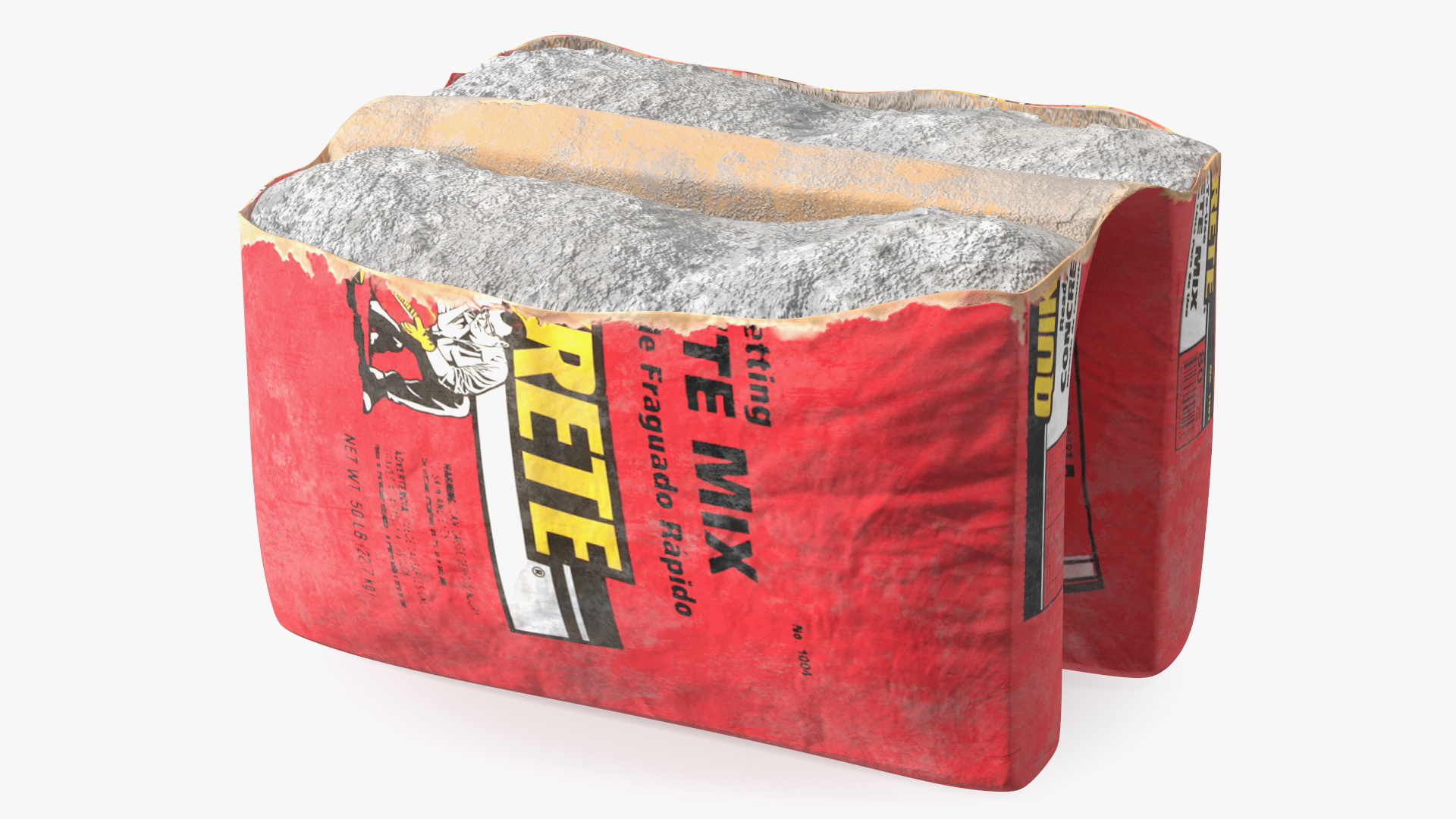 Torn Package Cement 50 Lb Red is a three-dimensional model of cement concrete mix bag (sack), which contains a widely known pre-mixed blend of cement, sand, specialized aggregates etc..