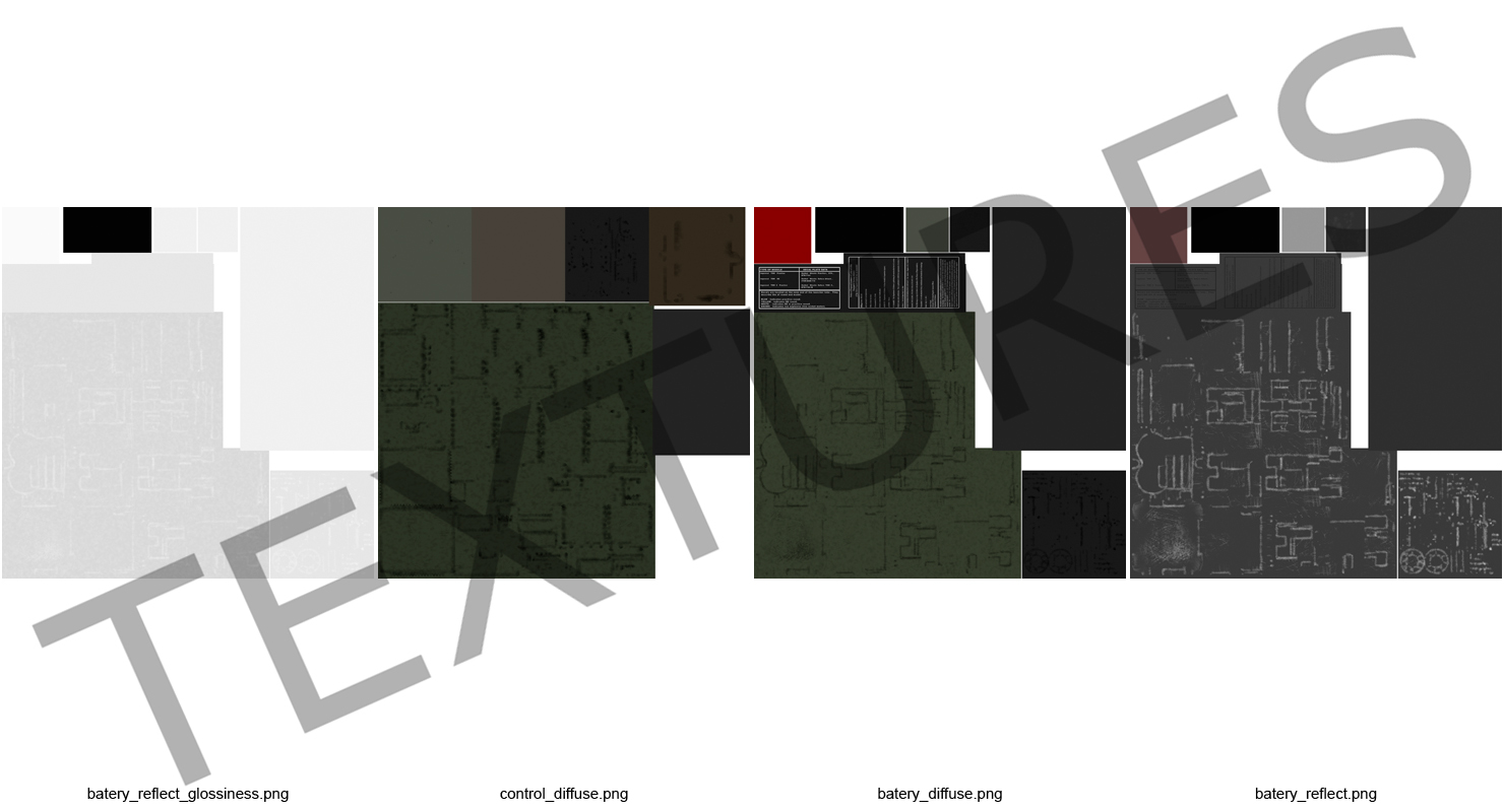 All textures and materials are included and mapped. (All colors can be easily modified.)