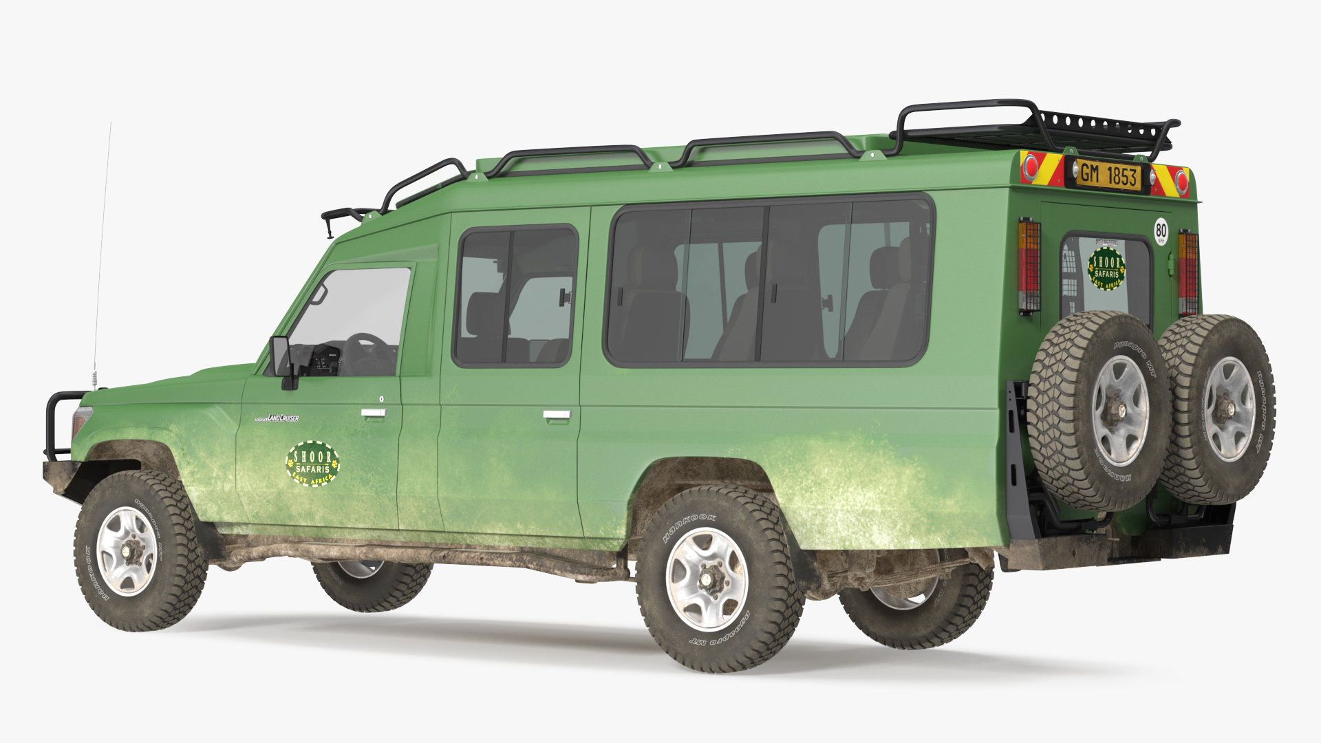 Toyota Land Cruiser Safari Green Dirty is a three-dimensional model of a vehicle which is tough terrain trip van transport.