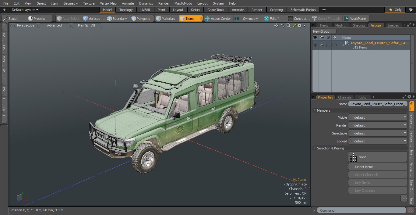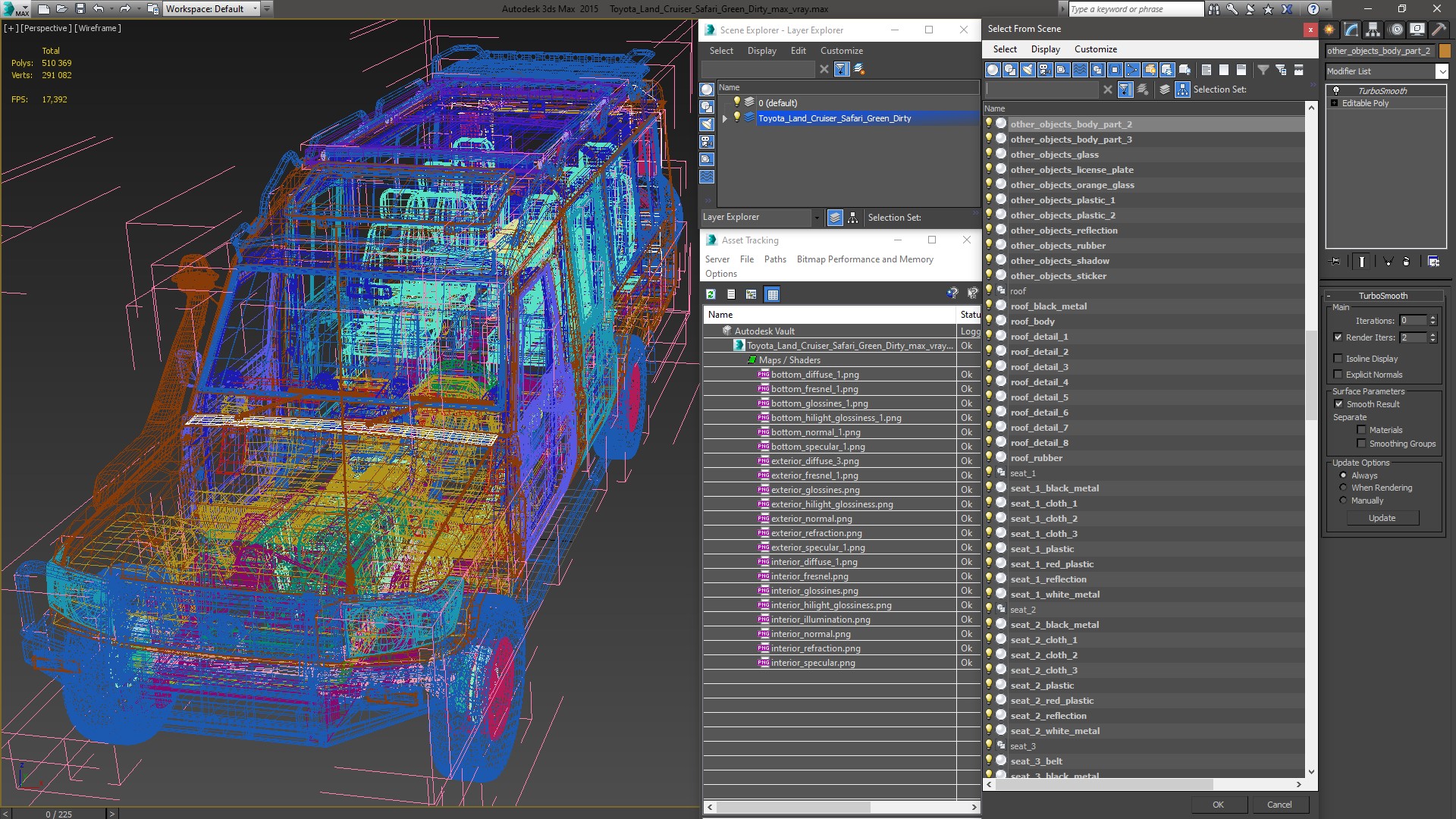 Toyota Land Cruiser Safari Green Dirty is a high quality, photo real 3d model that will enhance detail and realism to any of your rendering projects. The model has a fully textured, detailed design that allows for close-up renders, and was originally modeled in 3ds Max 2020 and rendered with V-Ray. Renders have no postprocessing!