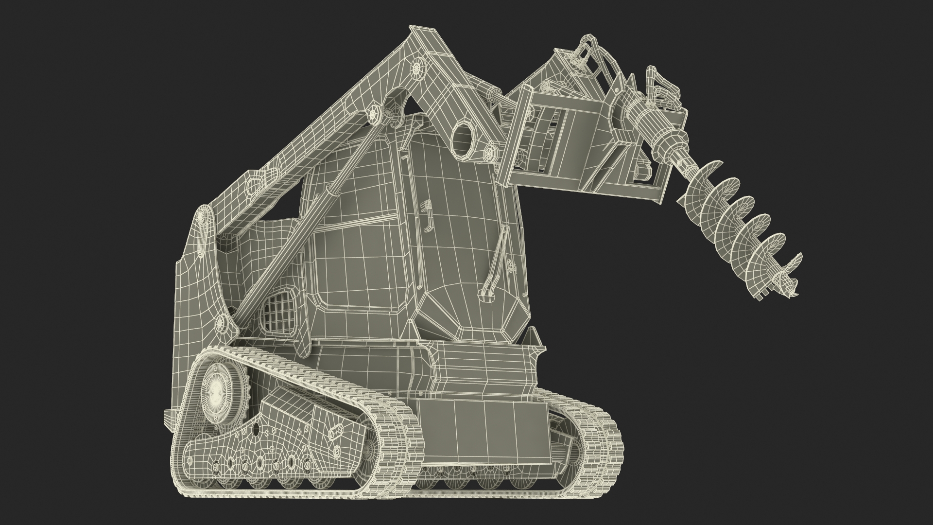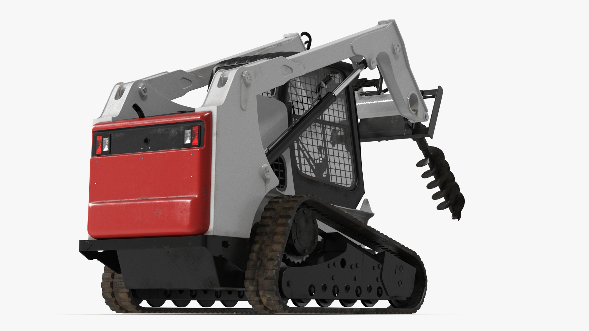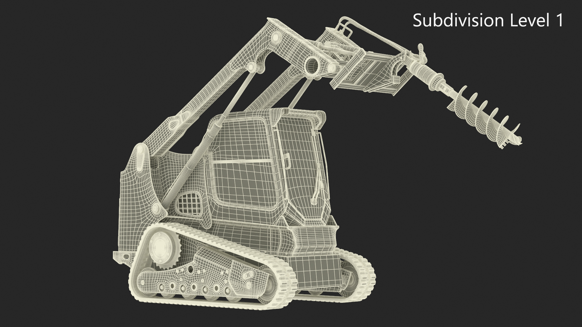 Track Skid Steer with Post Hole Auger Rigged is a 3d model of specialized piece of heavy equipment used for digging holes, typically for the purpose of installing fence posts, signposts, or other similar structures.