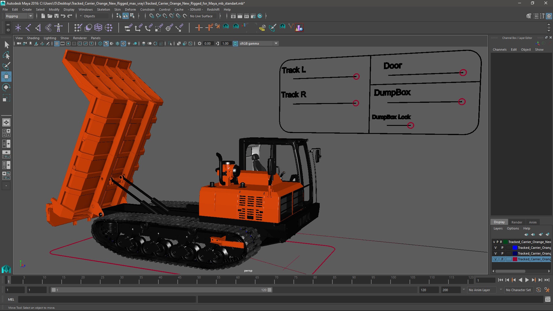 Tracked Carrier Orange New Rigged for Maya is fully rigged and is ready to be animated in Maya. You can easily position it the way you need or animate it the way your project requires. See the screenshots to get an idea of how rigging works. The pose of the model on the render images is an example and can be recreated using rig, it is not initially included into the product.