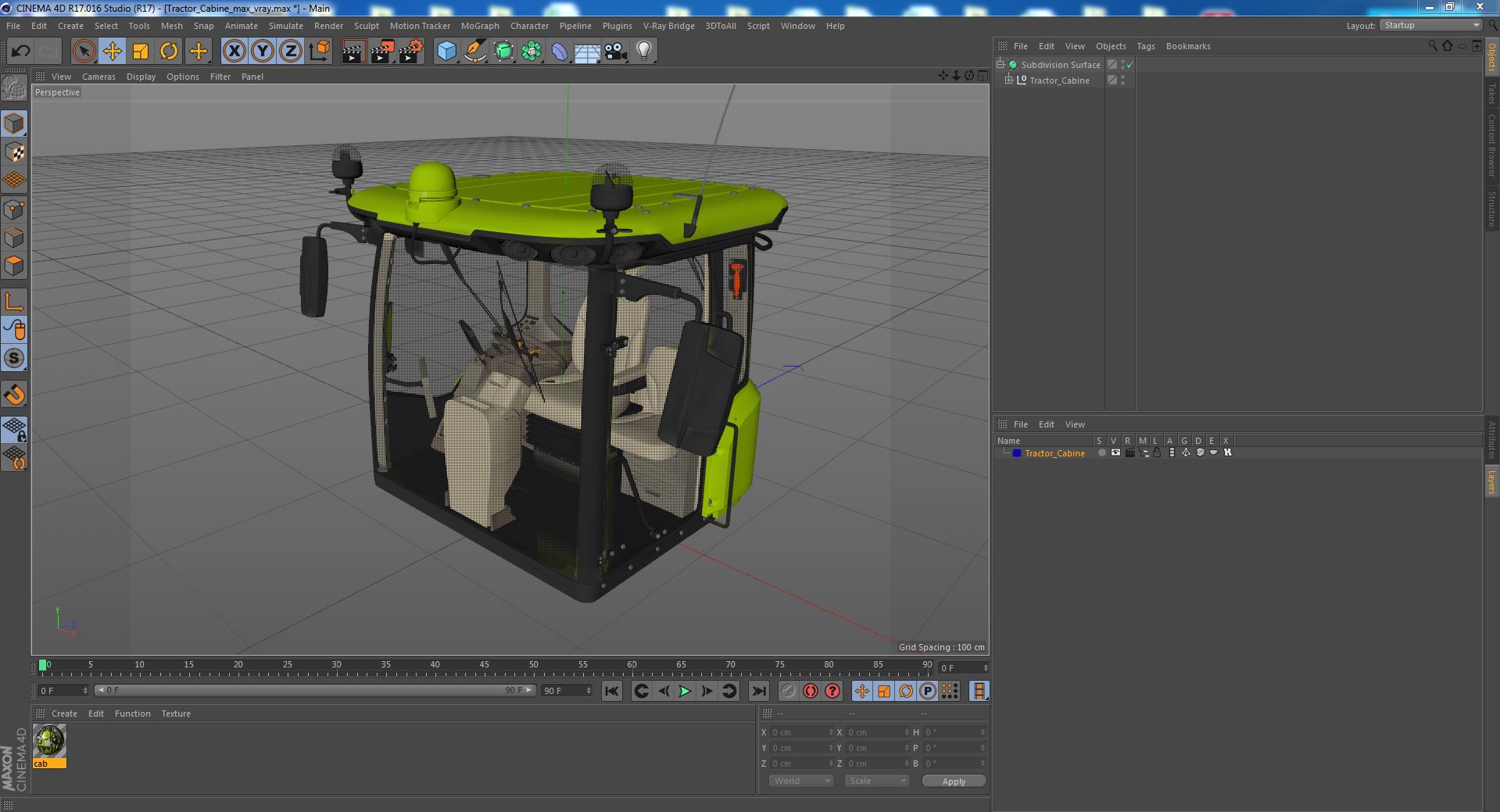 Tractor Cabine is a high quality, photo real 3d model that will enhance detail and realism to any of your rendering projects. The model has a fully textured, detailed design that allows for close-up renders, and was originally modeled in 3ds Max 2020 and rendered with V-Ray. Renders have no postprocessing!