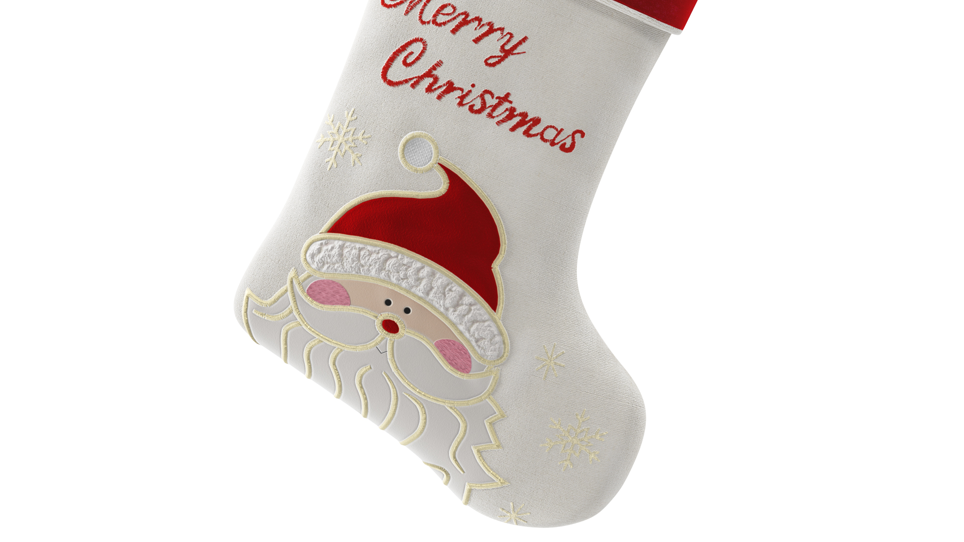 Christmas knitted wool sock (stocking) which can be hung by the fireplace or elsewhere in the home on Christmas Eve. Children have hung stockings, hoping to receive gifts from Santa Claus. Today, Christmas stockings are filled with small toys, candies, and other surprises.