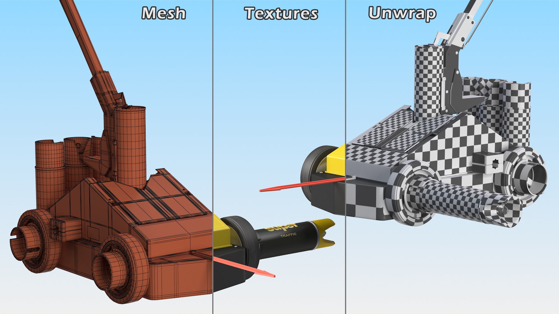 Traffic Line Stripping Machine is a high quality, photo real 3d model that will enhance detail and realism to any of your rendering projects. The model has a fully textured, detailed design that allows for close-up renders, and was originally modeled in 3ds Max 2020 and rendered with V-Ray. Renders have no postprocessing!