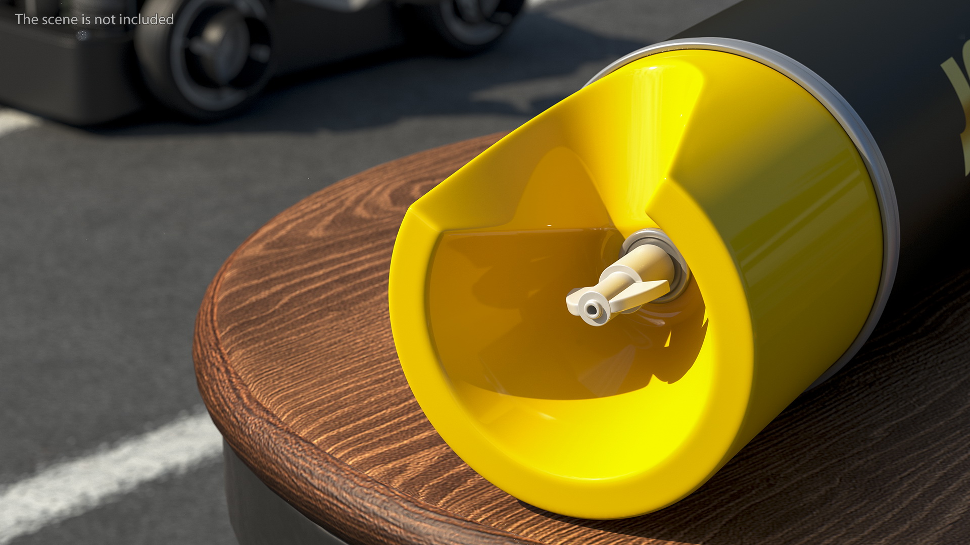 A special contemporary wheeled road surface marking device used to indicate regulation for parking and stopping.