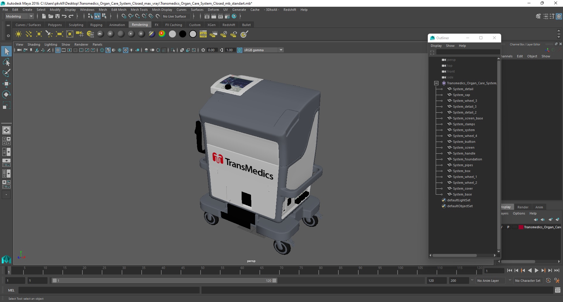 Transmedics Organ Care System Closed is a high quality, photo real 3d model that will enhance detail and realism to any of your rendering projects. The model has a fully textured, detailed design that allows for close-up renders, and was originally modeled in 3ds Max 2020 and rendered with V-Ray. Renders have no postprocessing!