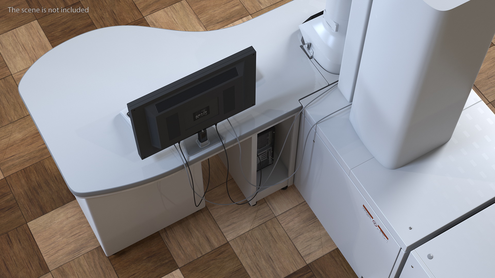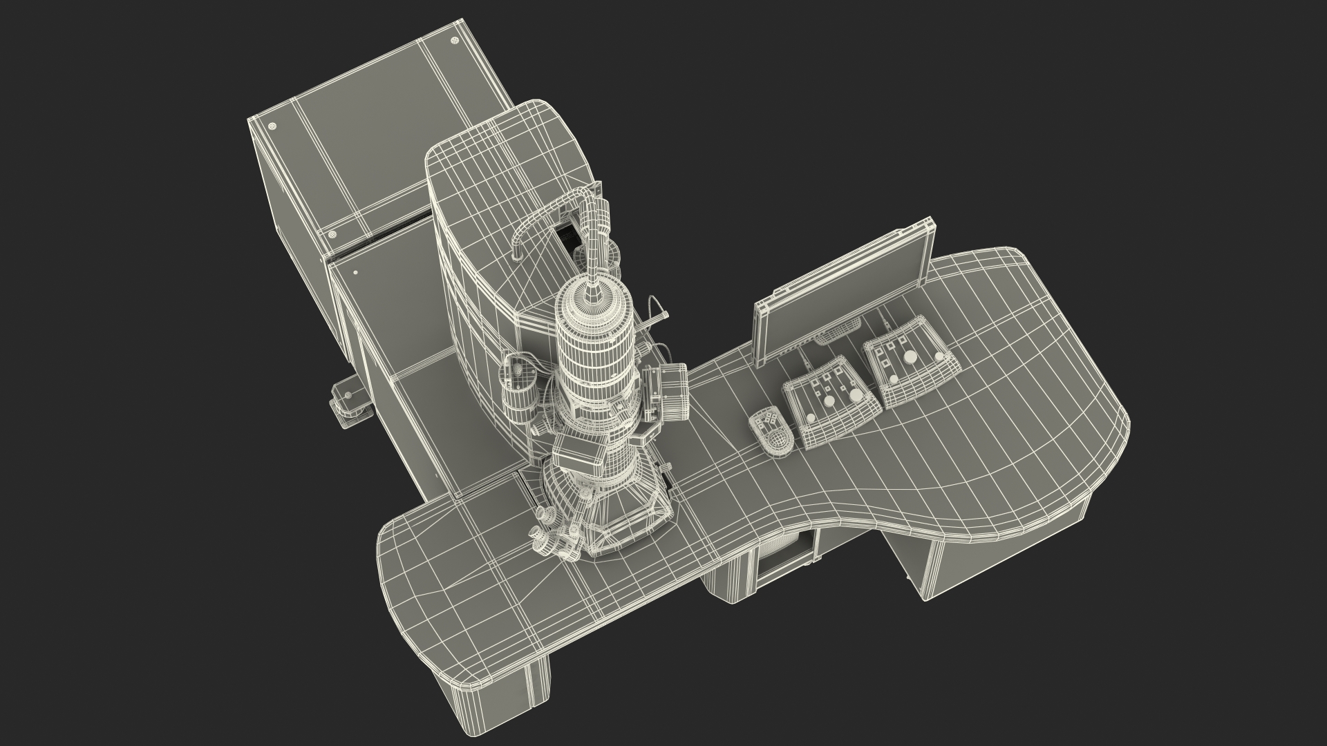 Transmission Electron Microscope With Control System is a three-dimensional model of a laboratory high tech electronic instrument designed to examine objects that are too small.