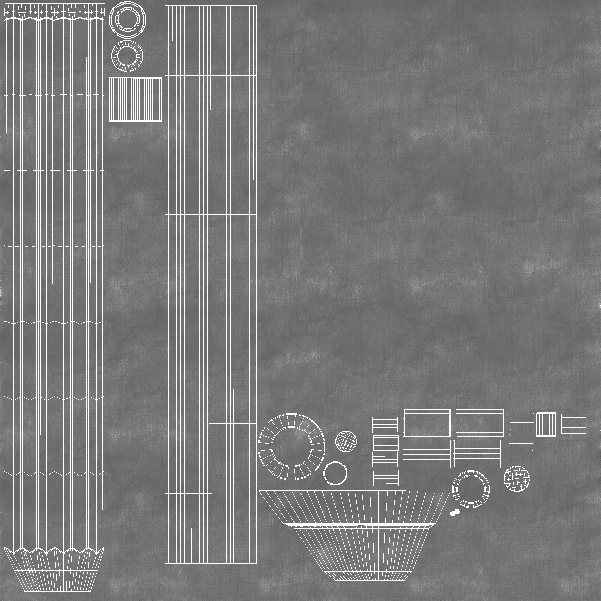 All textures and materials are included and mapped. (All colors can be easily modified.)