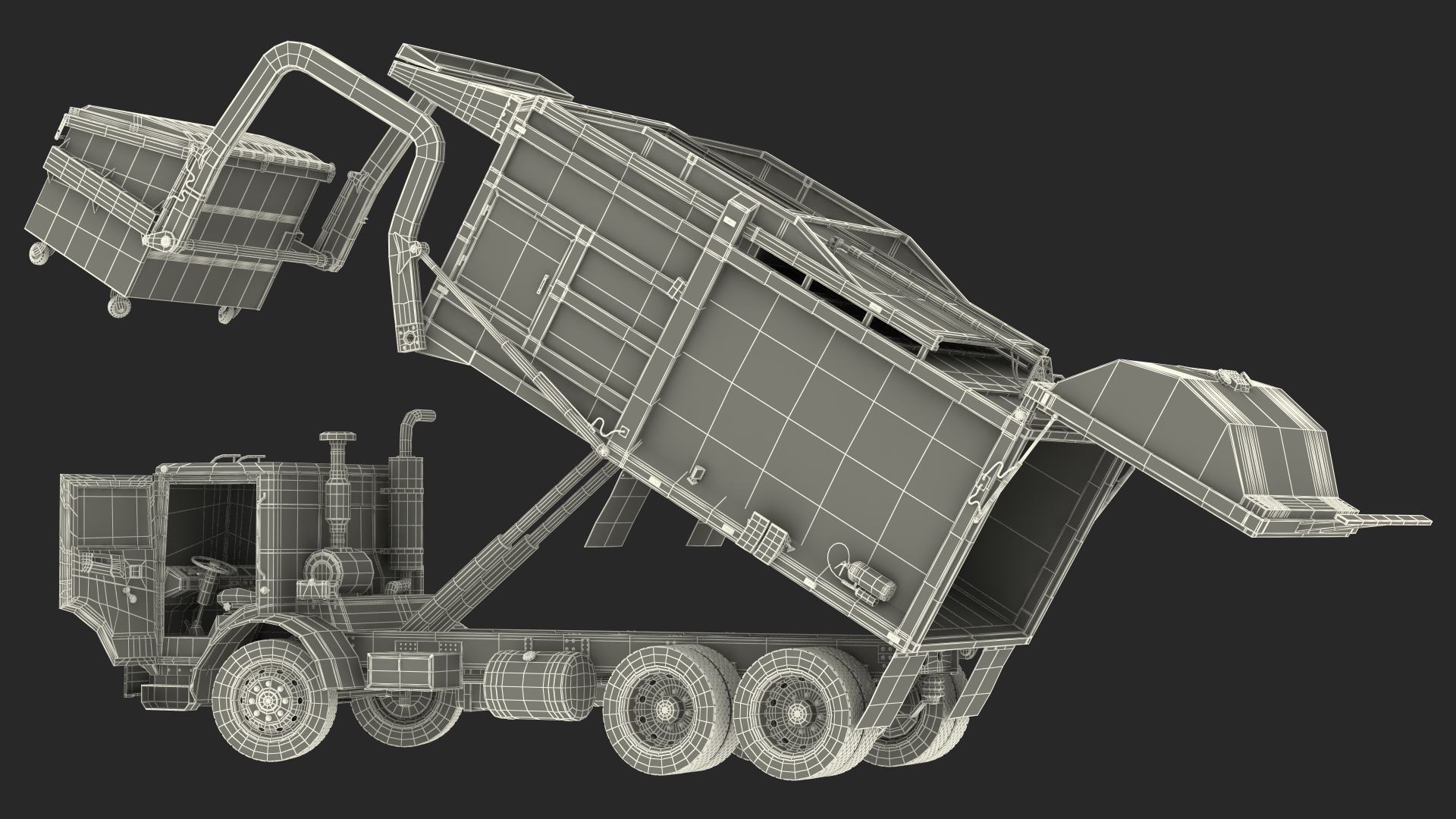 Trash Truck Generic with Dumpster Blue Rigged is fully rigged and is ready to be animated. You can easily position it the way you need or animate it the way your project requires using helpers in 3D Studio Max. See the turntable to get an idea of how rigging works.