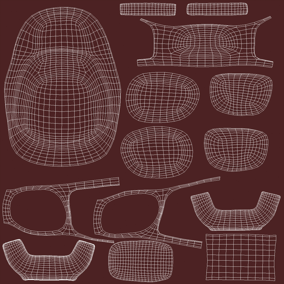 All textures and materials are included and mapped. (All colors can be easily modified.)
