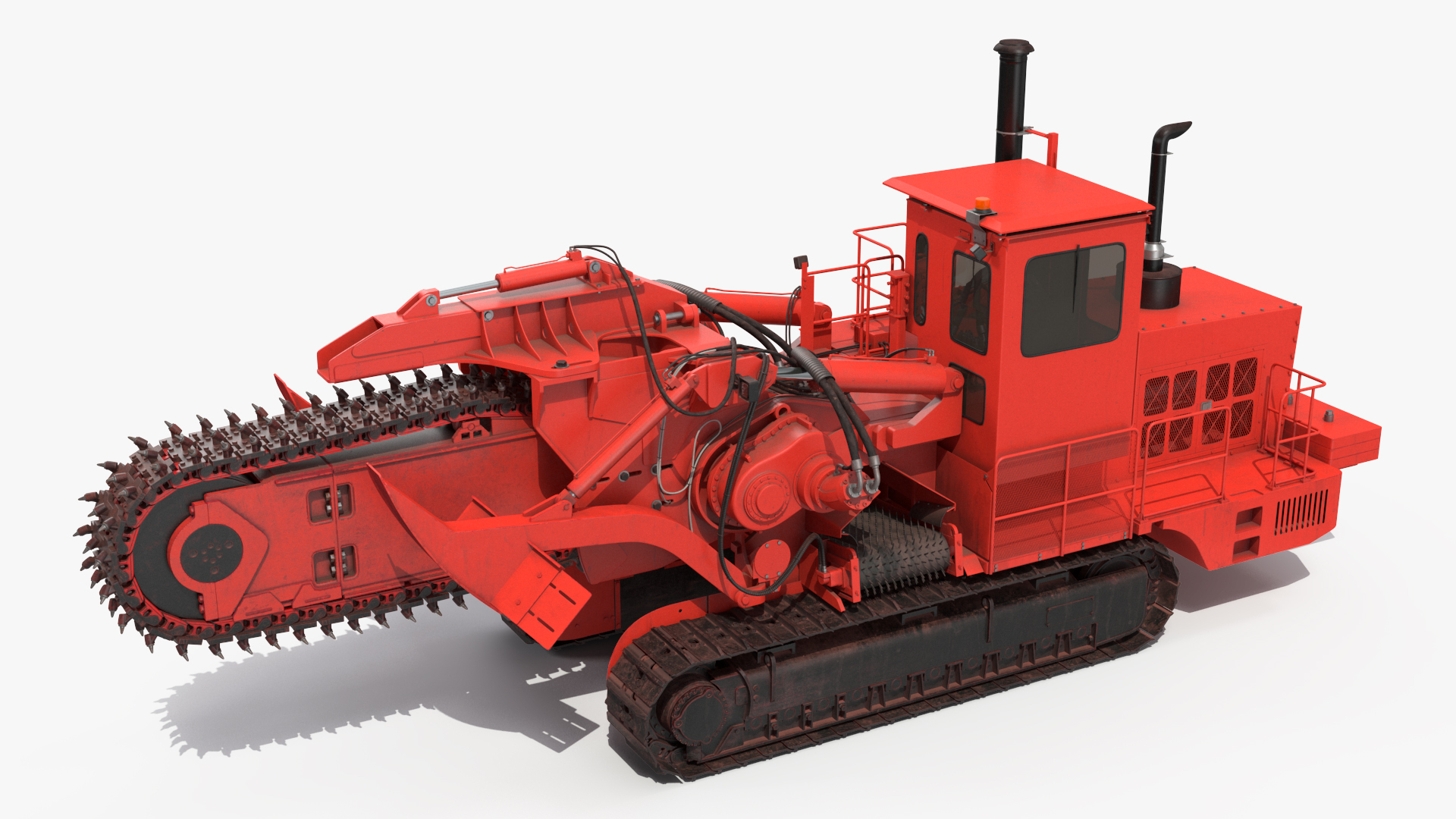 Trencher Machine Red Dusty is a 3d model of heavy-duty construction equipment used for digging trenches in soil and other materials.