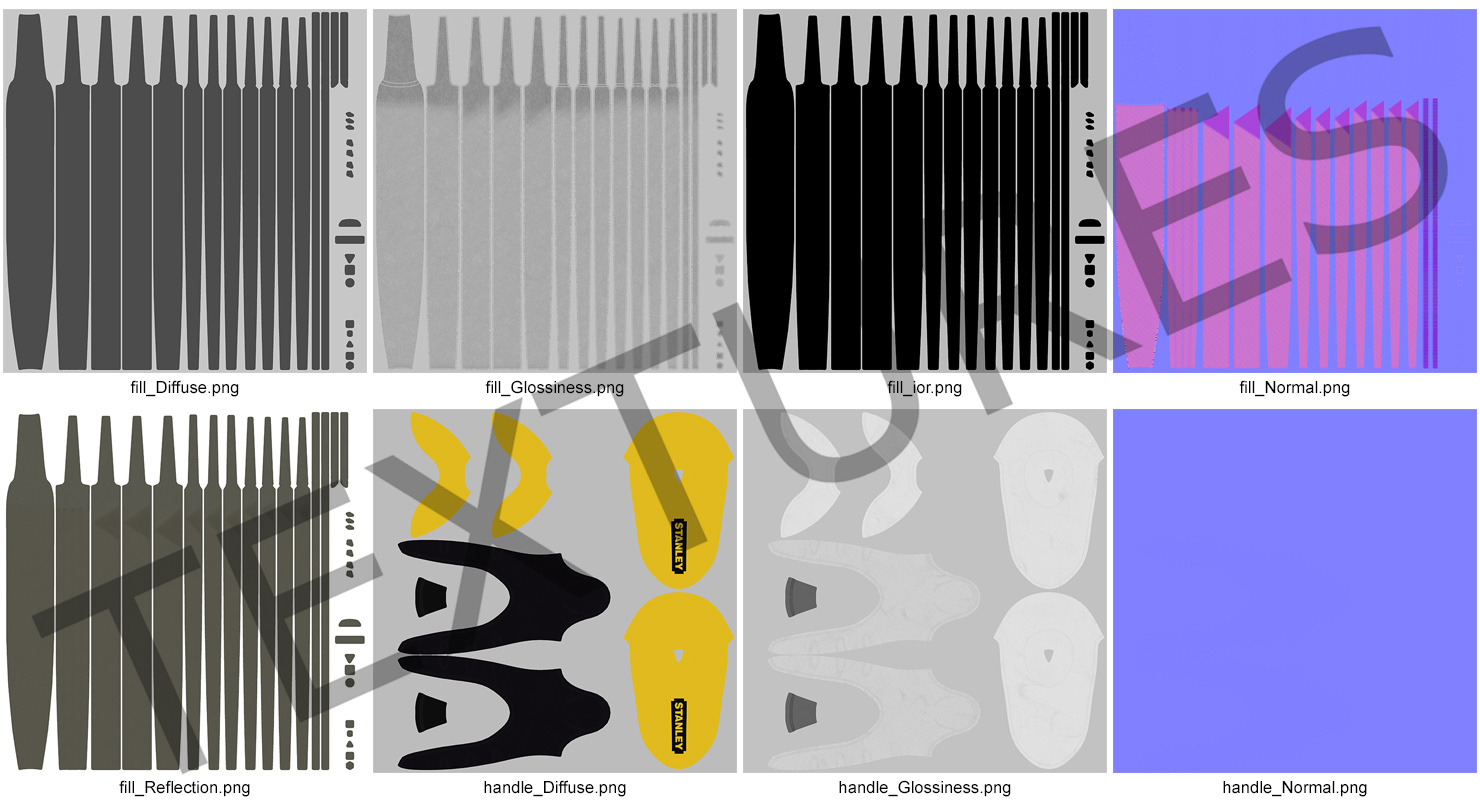 All textures and materials are included and mapped. (All colors can be easily modified.)