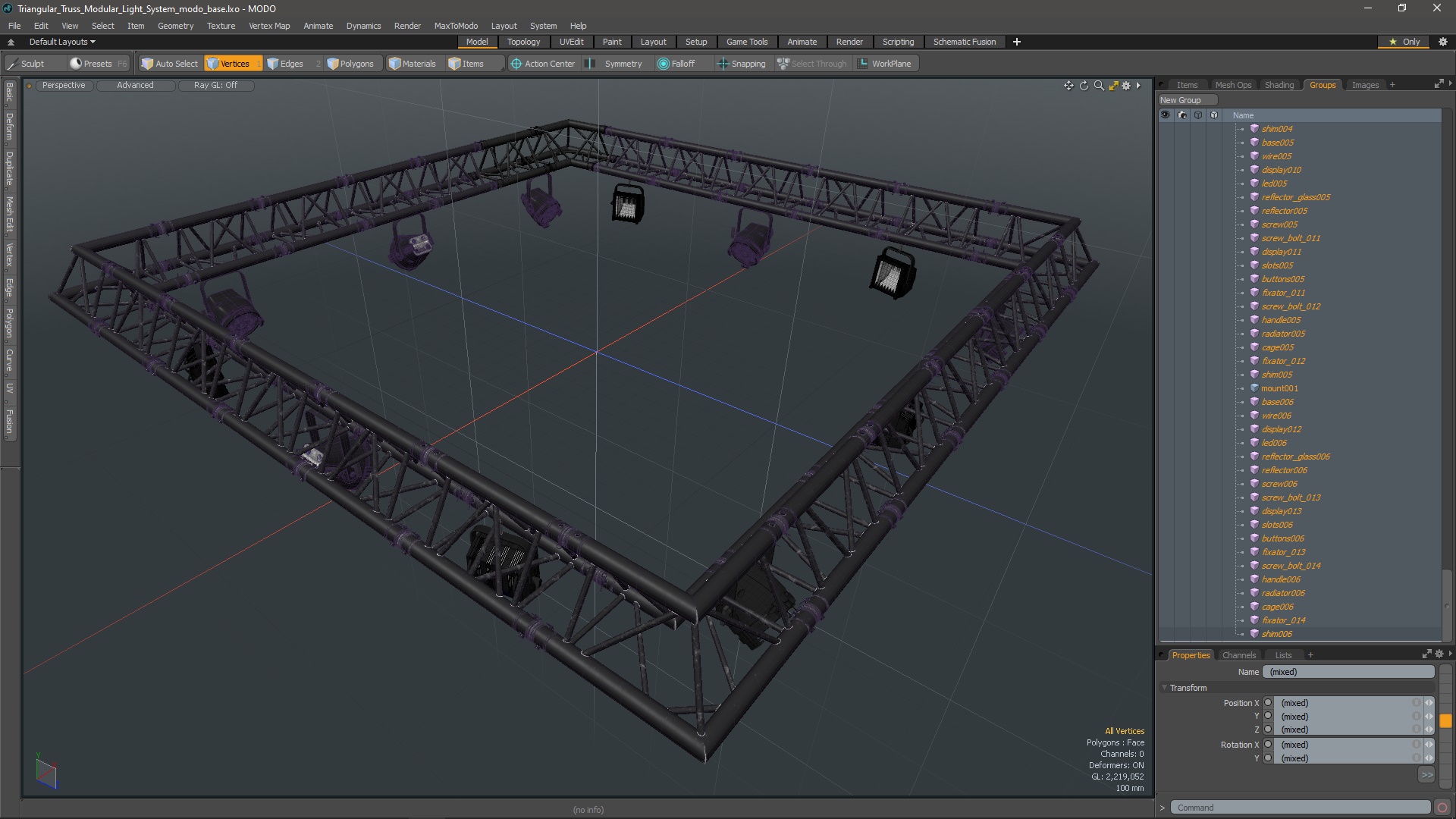 Triangular Truss Modular Light System is a three-dimensional model of truss module that is a special modular detail that is designed for constructing modules, and that can be used for various events, commercial exhibitions, etc..