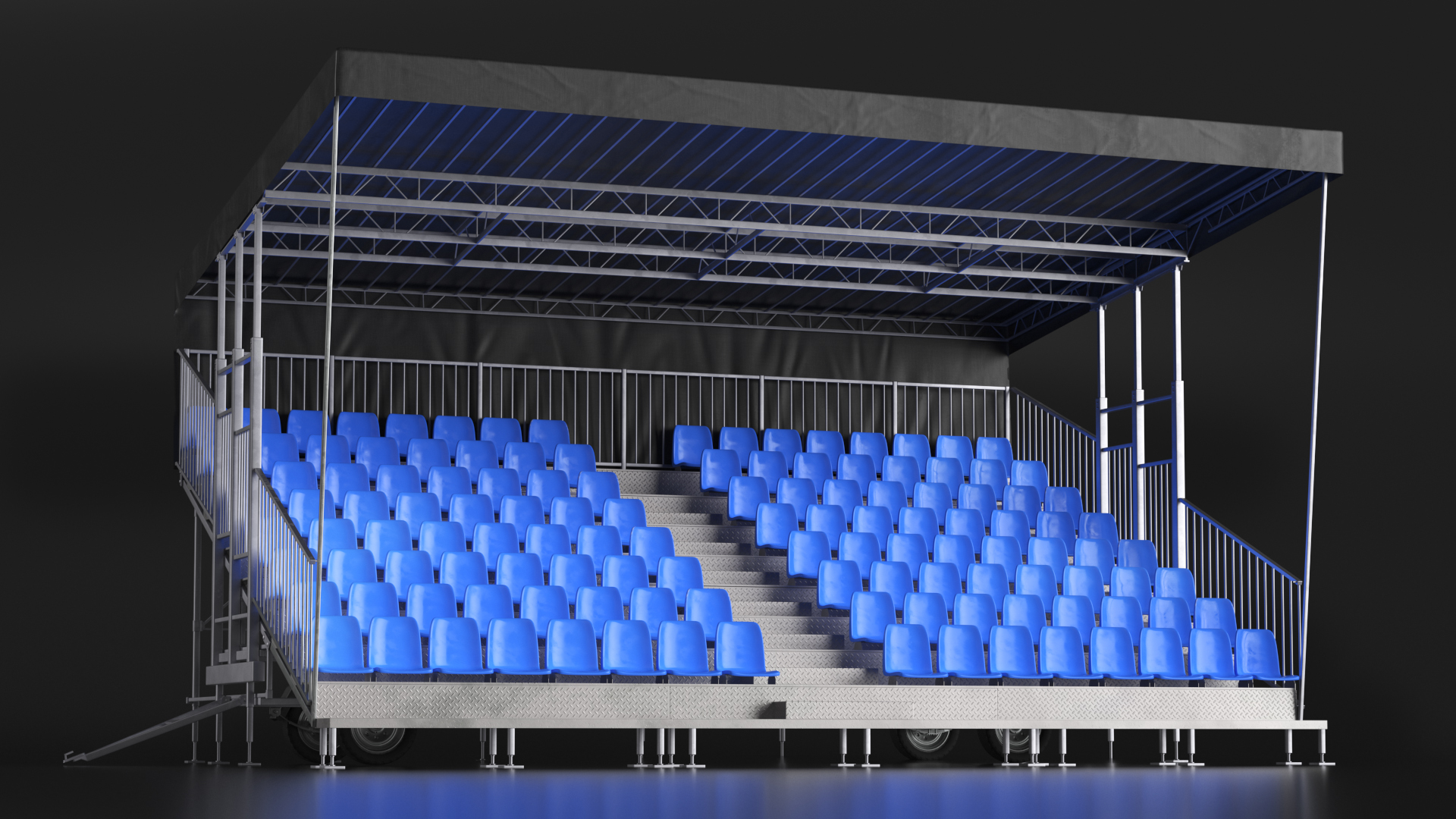 Tribunes with Roof is a three-dimensional model of covered grandstand with seat rows that is designed for receiving guests, sport events, special occasions and more.