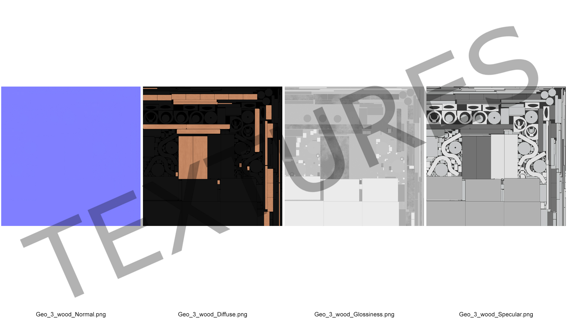 All textures and materials are included and mapped. (All colors can be easily modified.)