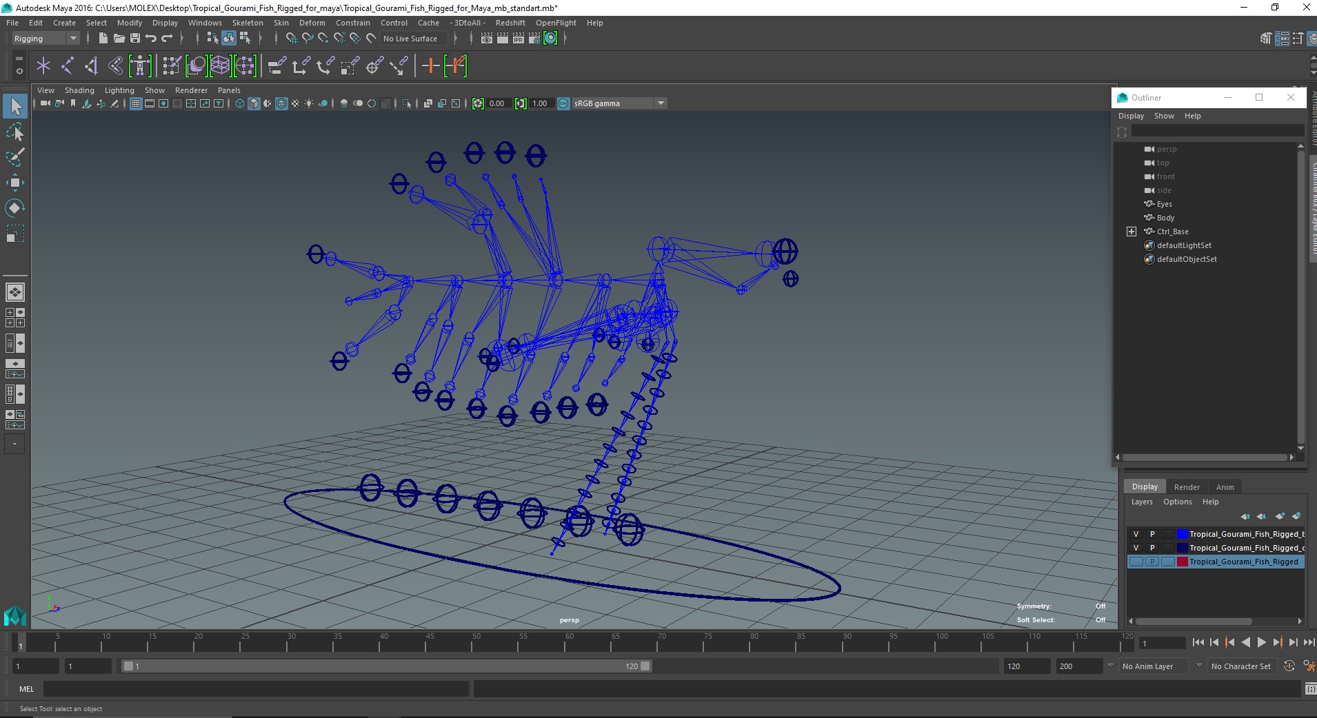 Tropical Gourami Fish Rigged for Maya is fully rigged and is ready to be animated in Maya. You can easily position it the way you need or animate it the way your project requires. See the screenshots to get an idea of how rigging works. The pose of the model on the render images is an example and can be recreated using rig, it is not initially included into the product.