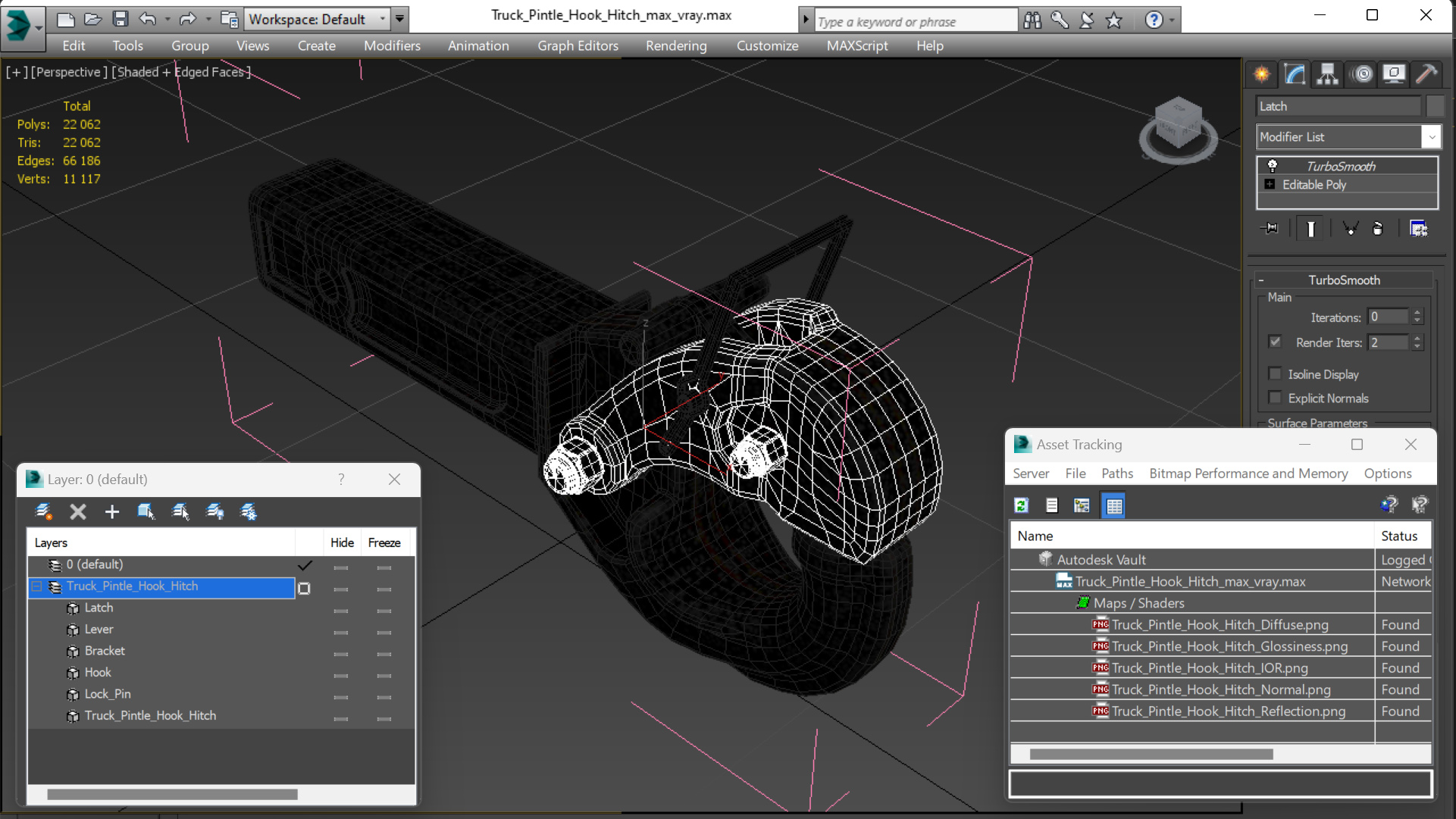 Truck Pintle Hook Hitch is a high quality, photo real 3d model that will enhance detail and realism to any of your rendering projects. The model has a fully textured, detailed design that allows for close-up renders, and was originally modeled in 3ds Max 2020 and rendered with V-Ray. Renders have no postprocessing!