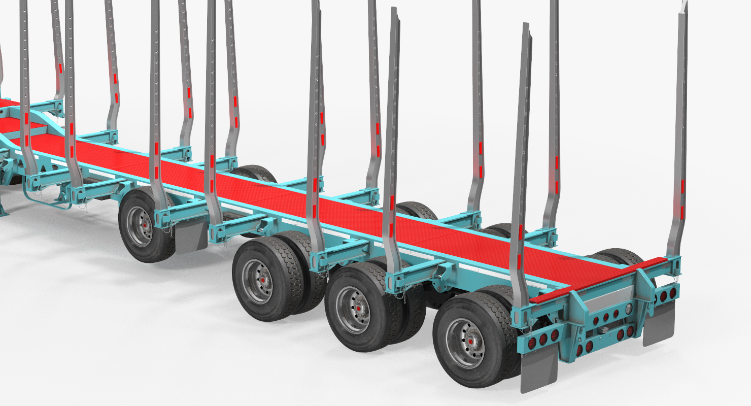 Truck with Empty Logging Trailer blue transport designed to carry log freight.