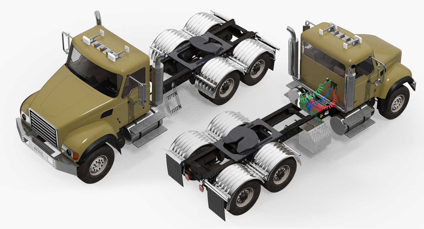 Truck with Logging Trailer is a high quality, photo real 3d model that will enhance detail and realism to any of your rendering projects. The model has a fully textured, detailed design that allows for close-up renders, and was originally modeled in 3ds Max 2020 and rendered with V-Ray. Renders have no postprocessing!